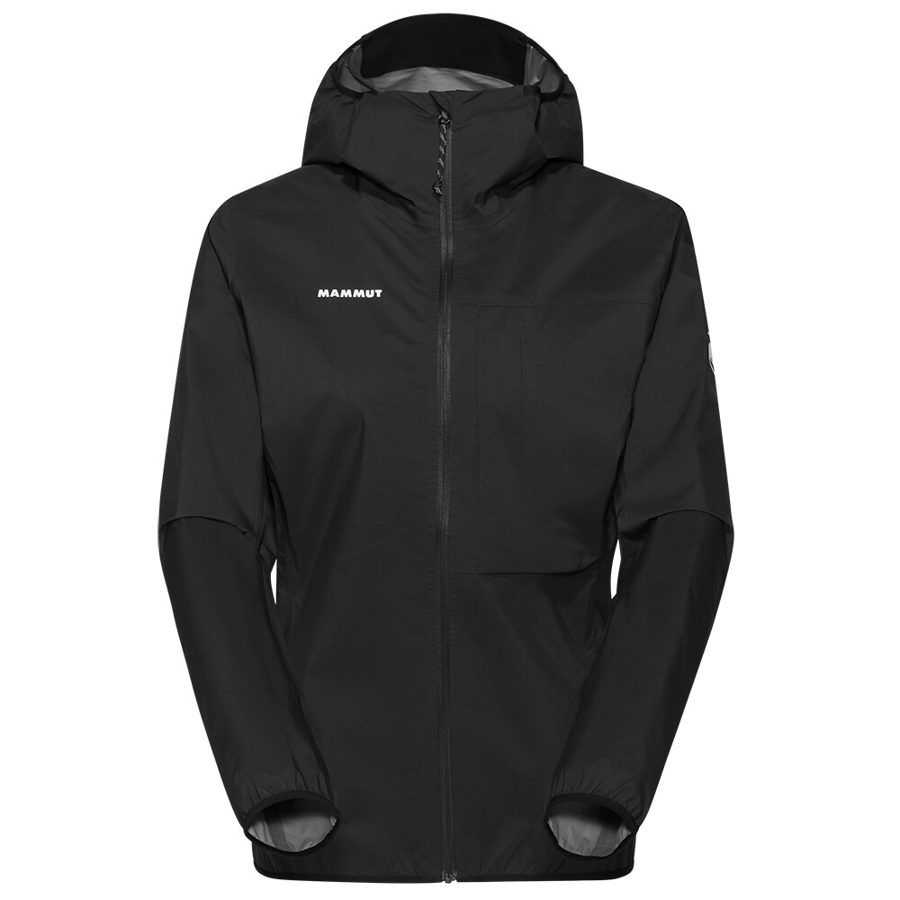 Kurtka wykonana jest z membrany Mammut DRY Active. Dzięki temu jest wodoodporna, oddychająca i wiatroszczelna. Patent na klatce piersiowej umożliwia rozpięcie centralnego zamka błyskawicznego i regulację temperatury podczas wzmożonej aktywności fizycznej. Wstępnie ukształtowany kaptur idealnie dopasowuje się do sylwetki. Wstępnie ukształtowane rękawy są uzupełnione elastycznymi mankietami. Wewnętrzna kieszeń ma większy rozmiar. Szwy na ramionach są umieszczone tak, aby nie przeszkadzały podczas noszenia plecaka. Dolny dół jest elastyczny. Kurtkę po prostu pakuje się do kieszeni na piersi.