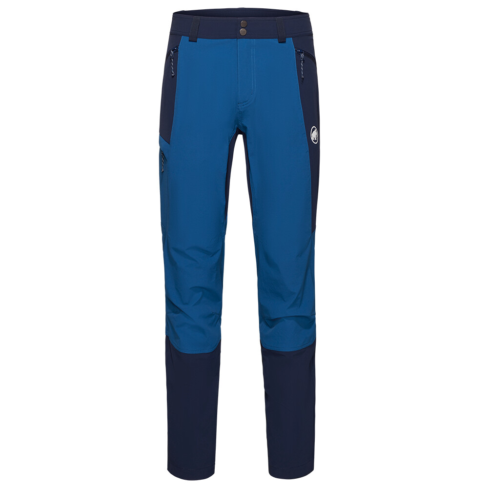 Spodnie wykonane są z funkcjonalnych materiałów, które są elastyczne, odprowadzają wilgoć, a dzięki panelom ripstop są odporne na ścieranie. Krój i konstrukcja spodni sprawiają, że nadają się one do alpejskiego terenu. Częściowo elastyczny pas uzupełniają szlufki na pasek. Wstępnie ukształtowane kolana nie ograniczają ruchów. Dwie kieszenie zapinane na zamek zapewniają bezpieczeństwo drobnych przedmiotów. Zapinana na zamek kieszeń na nogawce jest dostępna nawet w siodle wspinaczkowym.