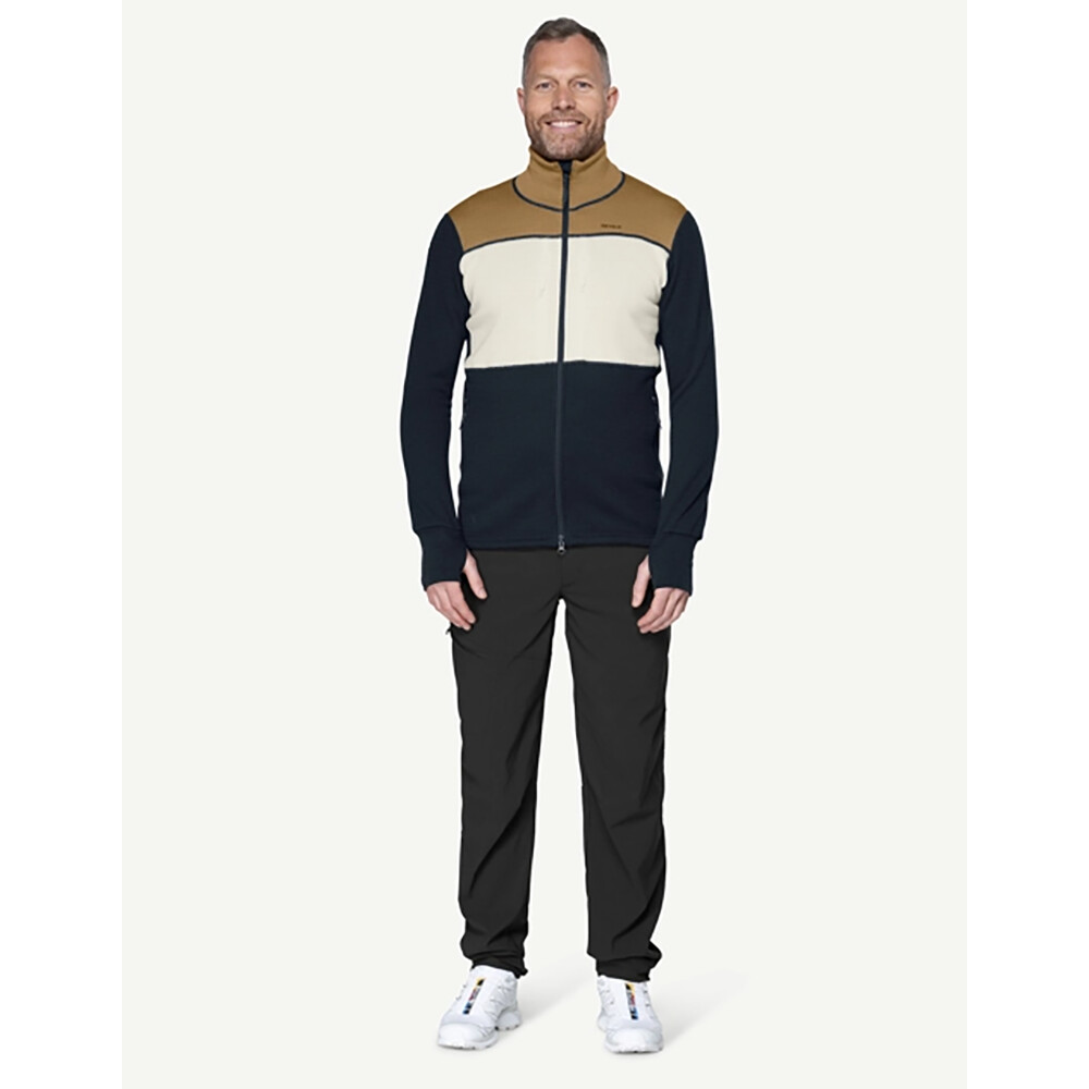 Bluza wykonana jest w 100% z wełny merynosów o gramaturze 310 g/m2. Jest wysoce oddychająca, ciepła i odporna na zapachy. Utrzymuje ciepło nawet wtedy, gdy jest mokra. Stójka chroni szyję przed zimnem. Dolny dół jest zakończony sznurkiem, który zapewnia idealne dopasowanie. Mankiety rękawów mają otwory na kciuki, a bluza ma wiele kieszeni do przechowywania kosztowności lub mniejszych przekąsek.
