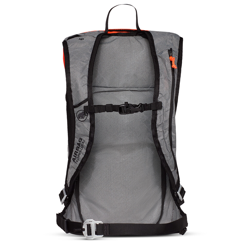 Plecak lawinowy z poduszką powietrzną. Jest lekki i ma wygodny system pleców wykonany z termoformowanej pianki EVA. Możliwość przypięcia nart, snowboardu, kasku, czekana i innego sprzętu. Pomarańczowe elementy dla lepszej widoczności.