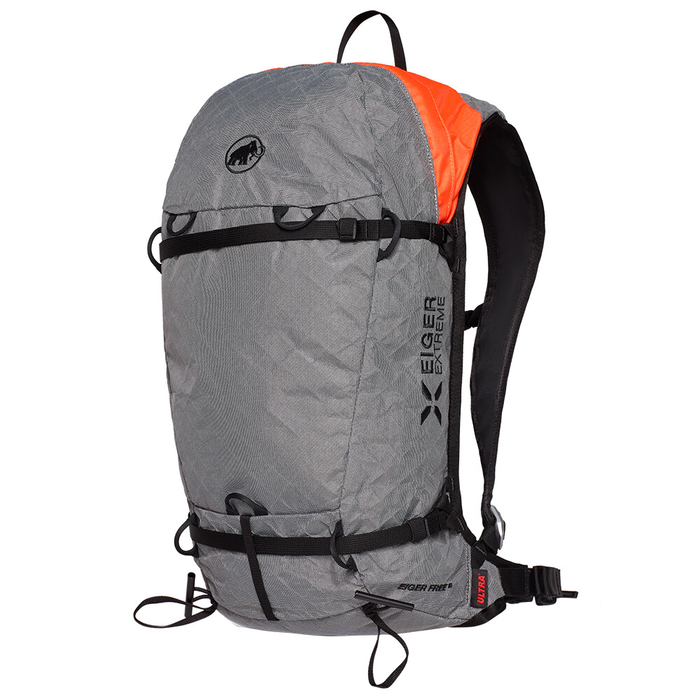 Eiger Free 20 firmy Mammut to plecak narciarski z poduszką lawinową ważący zaledwie 1500g. Wykonany jest z ultralekkiego, ale bardzo wytrzymałego materiału ULTRA™. Nowo opracowany system Eiger Hook umożliwia dostosowanie pasków do przenoszenia różnego sprzętu (nart, snowboardu, liny, kijków, czekanów...) i działa dobrze nawet w grubych rękawicach. Plecak jest częścią kolekcji premium Eiger Extreme firmy Mammut, która oferuje sprzęt techniczny do wymagających warunków w wysokich górach. Wykonany z wysokiej jakości materiałów, z naciskiem na trwałość i lekkość.