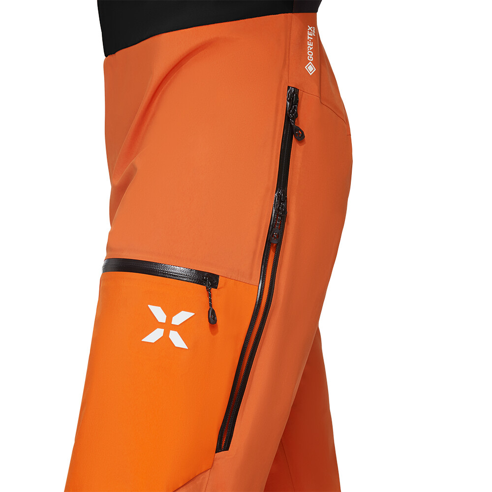 Trójwarstwowa membrana GORE-TEX Pro w połączeniu z nylonem z recyklingu zapewnia ochronę w niesprzyjających warunkach pogodowych przy zachowaniu doskonałej oddychalności. Podwyższony dół i szelki zapewniają ochronę przed śniegiem. Kieszeń na piersi Barryvox® jest wyposażona w wewnętrzną pętlę. Dwie kieszenie na nogawkach pomieszczą wszystko, czego potrzebujesz. W jednej z kieszeni znajduje się wewnętrzna kieszeń na telefon wykonana z materiału neoprenowego. Zapinana na zamek wentylacja umożliwia regulację temperatury. Spodnie są wzmocnione, aby zapobiec uszkodzeniom. Wewnętrzne osłony przeciwśnieżne chronią przed śniegiem. Szerokość nogawek jest regulowana.