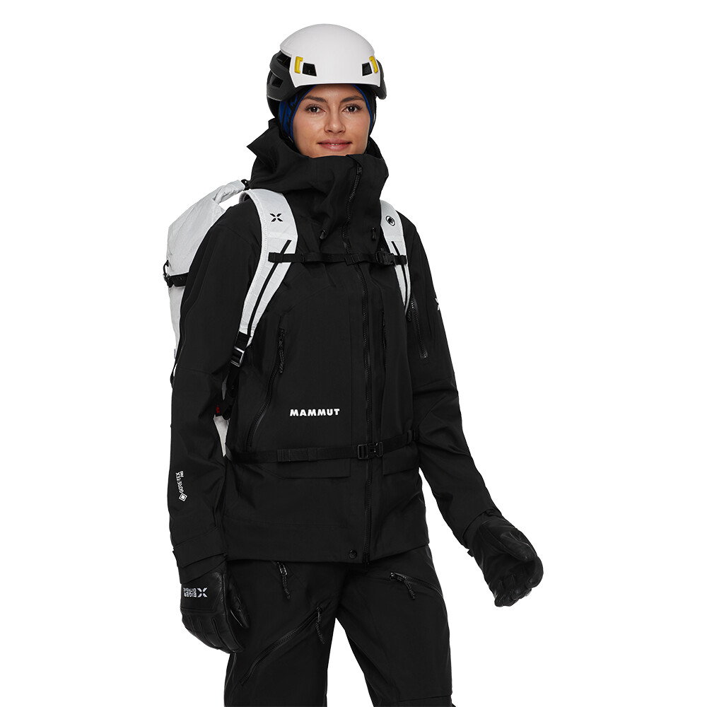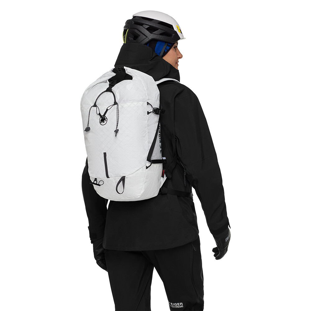 Minimalistyczny wariant plecaka alpinistycznego Eiger Nordwand 28 Women firmy Mammut o specjalnym kroju dla kobiet. Ma krótsze plecy i węższe paski na ramiona. Wykonany jest z wytrzymałego materiału, ważącego zaledwie 370 g. Ma wzmocnione dno, aby zapobiec uszkodzeniom w skalistym terenie. Zwijana pokrywa pomaga utrzymać sprzęt w suchości w przypadku deszczu. Nowo zaprojektowany system Eiger Hook umożliwia dostosowanie pasków do przenoszenia różnego sprzętu (nart, snowboardu, liny, kijków, czekanów...). Plecak jest częścią kolekcji premium Mammut Eiger Extreme, która oferuje sprzęt techniczny do wymagających warunków w wysokich górach. Wykonany z wysokiej jakości materiałów, z naciskiem na trwałość i lekkość.