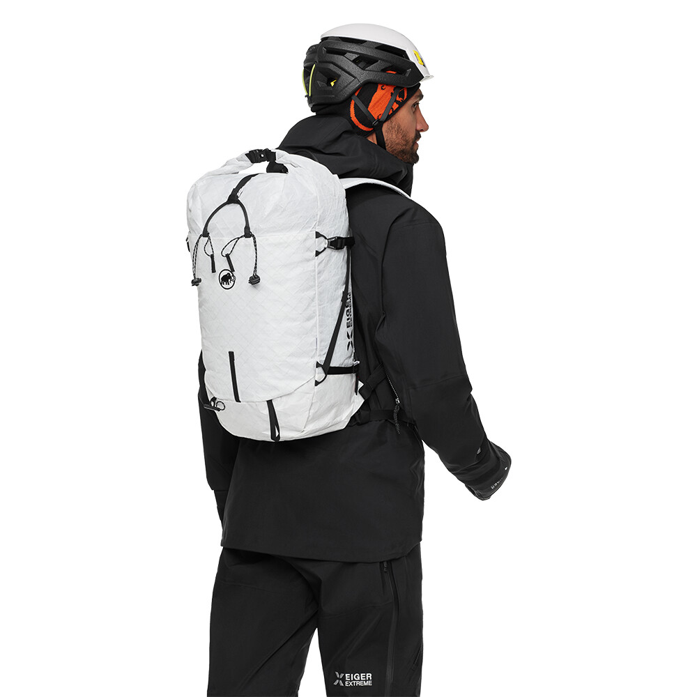 Minimalistyczna wersja plecaka alpinistycznego Eiger Nordwand 28 firmy Mammut. Wykonany jest z wytrzymałego materiału i waży zaledwie 380 g. Ma wzmocnione dno, aby zapobiec uszkodzeniom w skalistym terenie. Zwijana pokrywa pomaga utrzymać sprzęt w suchości w przypadku deszczu. Nowo zaprojektowany system Eiger Hook umożliwia dostosowanie pasków do przenoszenia różnego sprzętu (nart, snowboardu, liny, kijków, czekanów...). Plecak jest częścią kolekcji premium Mammut Eiger Extreme, która oferuje sprzęt techniczny do wymagających warunków w wysokich górach. Wykonany z wysokiej jakości materiałów, z naciskiem na trwałość i lekkość.