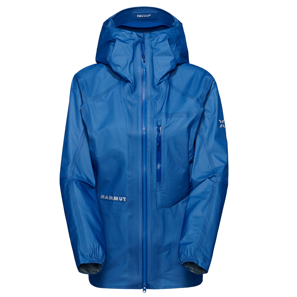 Damska techniczna kurtka wodoodporna dla każdej wspinaczki, alpinistki ... Łączy w sobie dwa rodzaje Gore-texu, aby zmniejszyć wagę. Posiada zamki błyskawiczne pod pachami, kaptur kompatybilny z kaskiem i system Recco®.