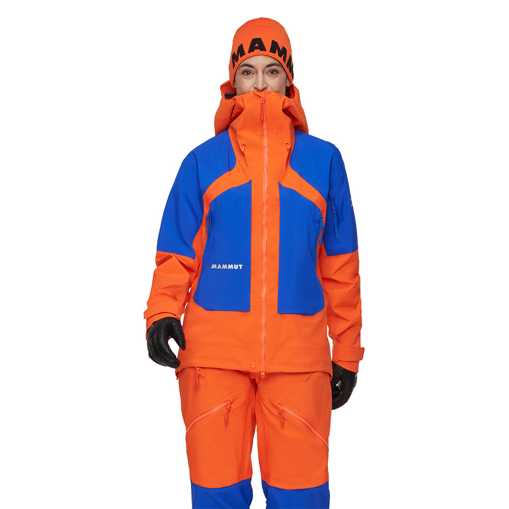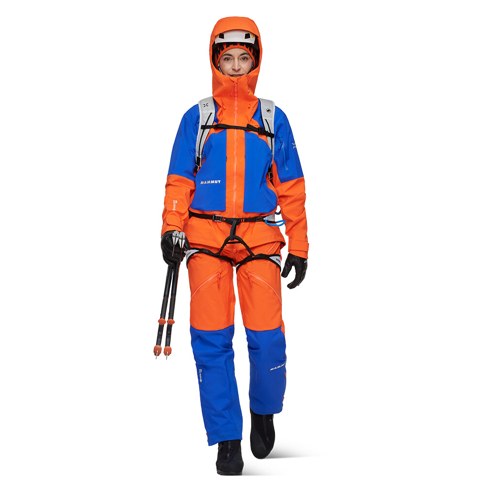 Kurtka jest wykonana z trójwarstwowego materiału GORE-TEX Pro, który jest wodoodporny, wiatroszczelny i oddychający. Damski sportowy krój kurtki został specjalnie opracowany dla kobiet uprawiających wspinaczkę, aby nie ograniczać ich ruchów. Wzmocnione szwy zmniejszają możliwość rozdarcia. Kaptur jest regulowany, ma wzmocniony daszek i jest kompatybilny z kaskiem. Wodoodporny centralny zamek błyskawiczny jest uzupełniony wewnętrzną klapą, która pozwala tymczasowo zamknąć kurtkę podczas wyprawy, jeśli zepsujesz zamek. Kurtka ma dwa zapinane na zamek otwory wentylacyjne pod pachami. Dwie kieszenie na piersi pomieszczą niezbędne drobiazgi. Wyprofilowane rękawy są uzupełnione regulowanymi mankietami, które można łatwo obsługiwać w rękawicach. Dolny dół jest również regulowany. Odblaski RECCO® zwiększają bezpieczeństwo. Kurtkę można spakować do kieszeni na piersi dla lepszego transportu.