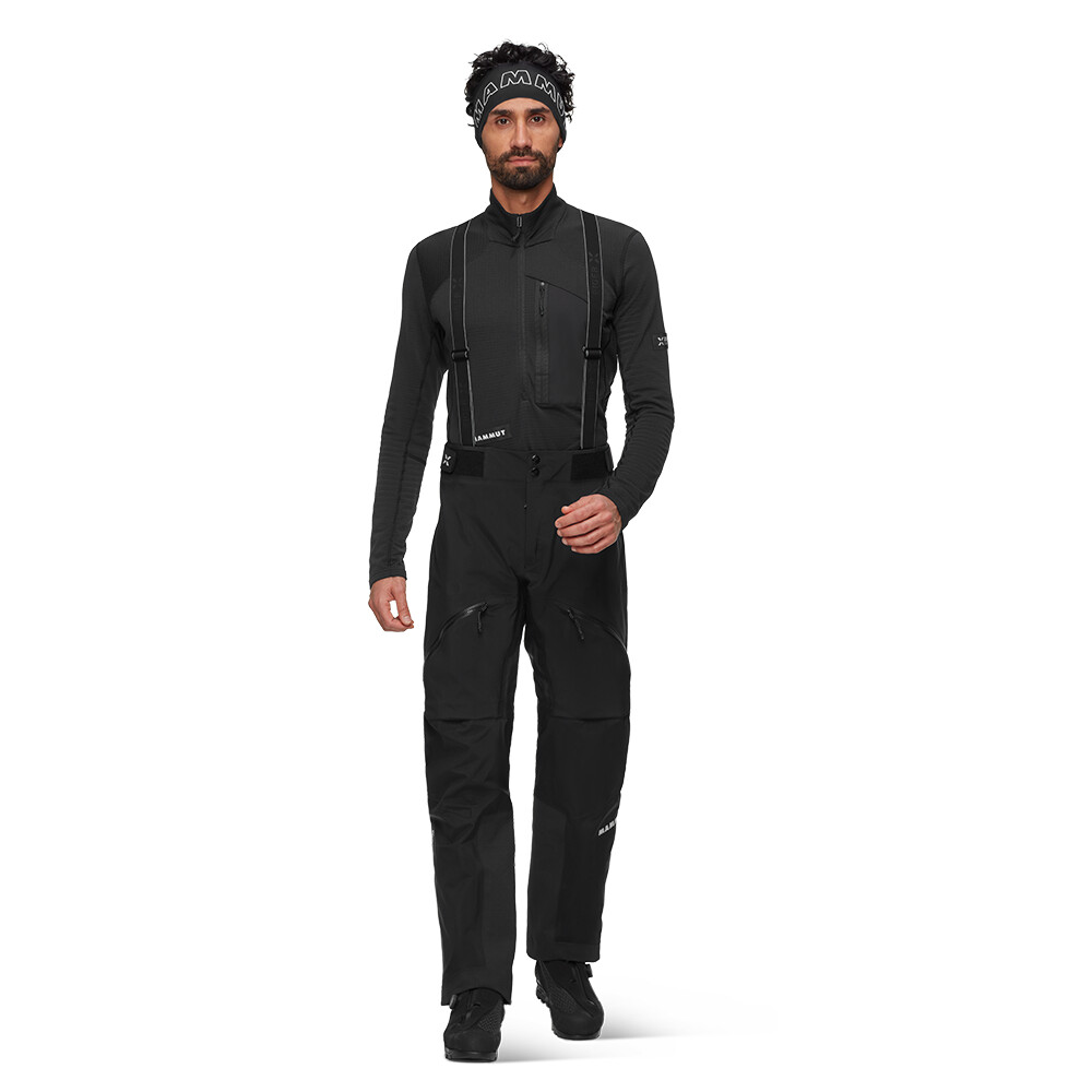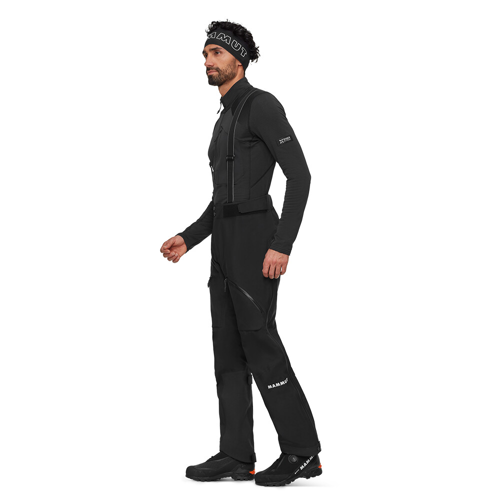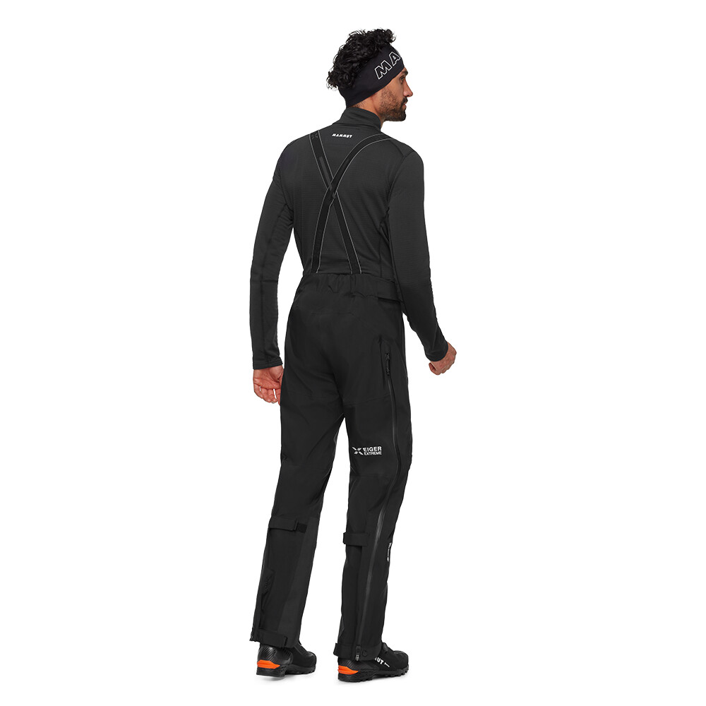 Spodnie wykonane są z 3-warstwowego materiału GORE-TEX Pro z membraną ePE bez PFC. Dzięki temu spodnie są maksymalnie odporne na wiatr, wodę i ścieranie, a jednocześnie oddychające. Wyrafinowany krój i dopracowane detale zapewniają wygodę i funkcjonalność podczas wspinaczki. Spodnie mają podwyższony panel tylny dla dodatkowej ochrony i regulowane, odpinane szelki. Dzięki praktycznym zapięciom na rzepy w pasie spodnie idealnie pasują. Boczne zamki błyskawiczne umożliwiają regulację temperatury. Przednie kieszenie są dostępne nawet podczas noszenia uprzęży wspinaczkowej. Zintegrowany odblask RECCO® zwiększa szanse na ratunek w nagłych wypadkach.
