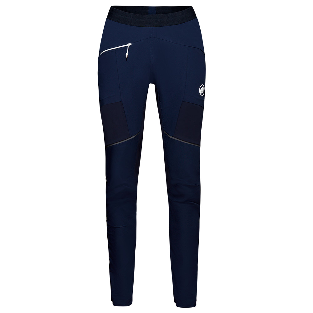 Męskie spodnie narciarskie Mammut zapewniają doskonałą ochronę na stoku. Spodnie mają wyższą talię, szelki, zapinaną na zamek wentylację, mnóstwo kieszeni, regulowaną szerokość nogawek i wzmocnienia na nogawkach. Spodnie są wodoodporne, wiatroszczelne i oddychające.