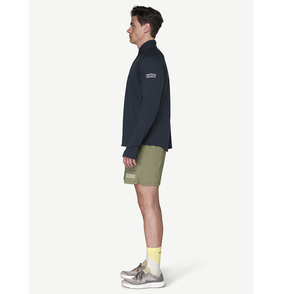 Męska koszulka Endurance Merino Zip norweskiej firmy Devold. Raglanowy krój rękawów jest wygodny podczas aktywnego ruchu i wędrówek z plecakiem. Końce rękawów mają otwory na kciuki. Z boku znajduje się mała kieszonka na drobne przedmioty, takie jak klucze, żele czy baton energetyczny. Stójka zapinana na zamek doda niezbędnego ciepła i poprawi wentylację.