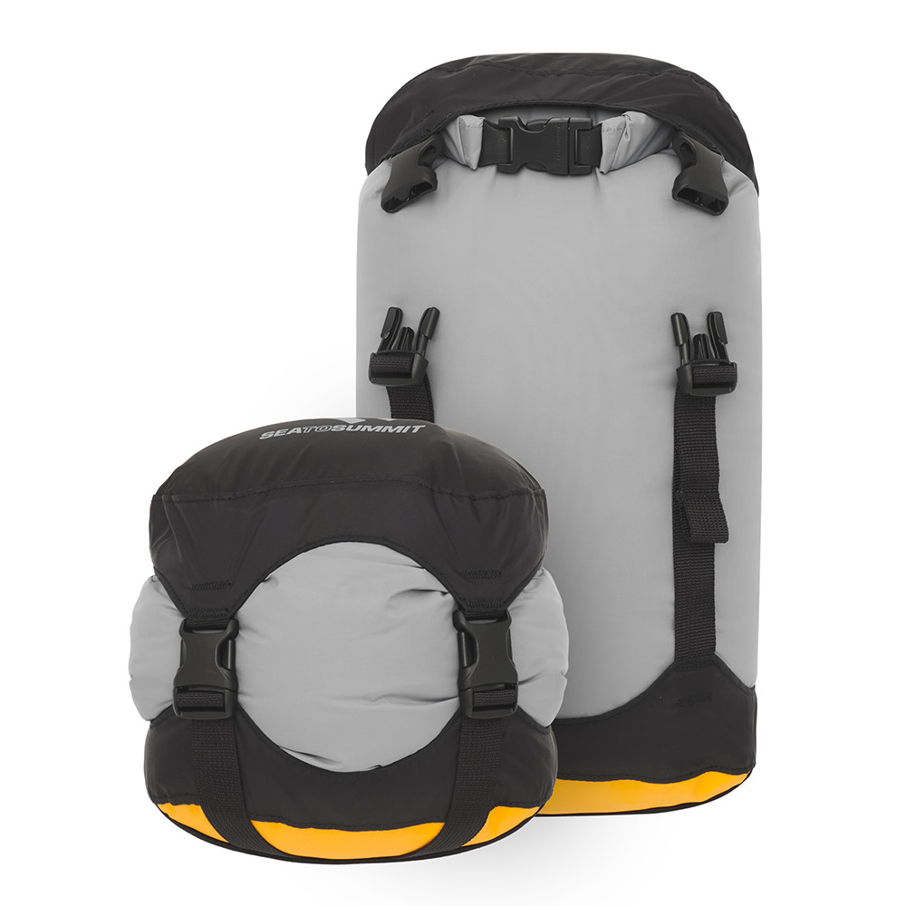 Evac Compression Dry Bag od Sea to Summit. Jest to praktyczna torba, która pozwala na skompresowanie zawartości do minimum, idealna na miękki i nieporęczny sprzęt, który zajmuje zbyt dużo miejsca, a także musi być chroniony przed zamoczeniem.