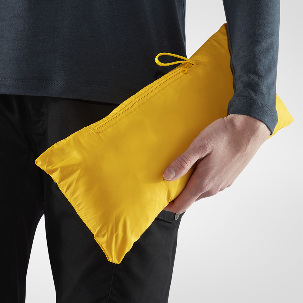 Expedition Lätt Hoodie to lekka, elastyczna i ocieplana kurtka odpowiednia do różnych aktywności zimowych. Dzięki izolacji wykonanej w 100% z poliestru pochodzącego z recyklingu z luźnymi włóknami, zapewnia puszystość i oddychalność. Kurtka jest idealna pod kurtkę softshell, ale może być również używana samodzielnie w deszczową pogodę, ponieważ radzi sobie z wilgocią bez utraty właściwości izolacyjnych. Kaptur, dwie kieszenie na dłonie i wewnętrzna kieszeń, która służy również jako pokrowiec na kurtkę, są częścią serii Expedition firmy Fjällräven, która słynie z kultowych projektów, materiałów produkowanych w sposób zrównoważony i wysokiej niezawodności w niskich temperaturach.