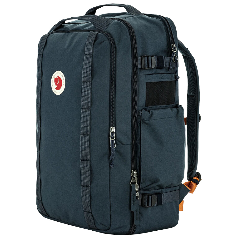 Färden Carry-On Pack to wytrzymały plecak podróżny firmy Fjällräven. Jego wymiary spełniają wymagania wszystkich głównych linii lotniczych jako bagaż podręczny. Posiada wiele zapinanych na zamek schowków. Wyściełana kieszeń na laptopa znajduje się najbliżej pleców. Bardzo przestronna komora główna ma wewnętrzne przegrody zapinane na zamek błyskawiczny, aby utrzymać rzeczy w lepszym porządku. Przednia komora jest ponownie wyposażona w wewnętrzne kieszenie (2 zapinane na zamek), a dodatkowo znajduje się w niej torba crossbody na niezbędne akcesoria podróżne, takie jak paszport lub portfel.
