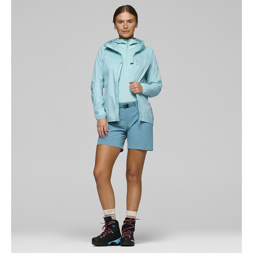 Kurtka damska falketind aero60 Hood marki Norrona to ultralekka wiatroszczelna kurtka przeznaczona do intensywnych aktywności i szybkich górskich wędrówek. Dzięki materiałowi aero60 łączy w sobie doskonałą oddychalność, lekkość i ochronę przed wiatrem, dzięki czemu nie ogranicza ruchów i świetnie sprawdza się podczas takich aktywności, jak bieganie w terenie, skialpinizm i szybki trekking.