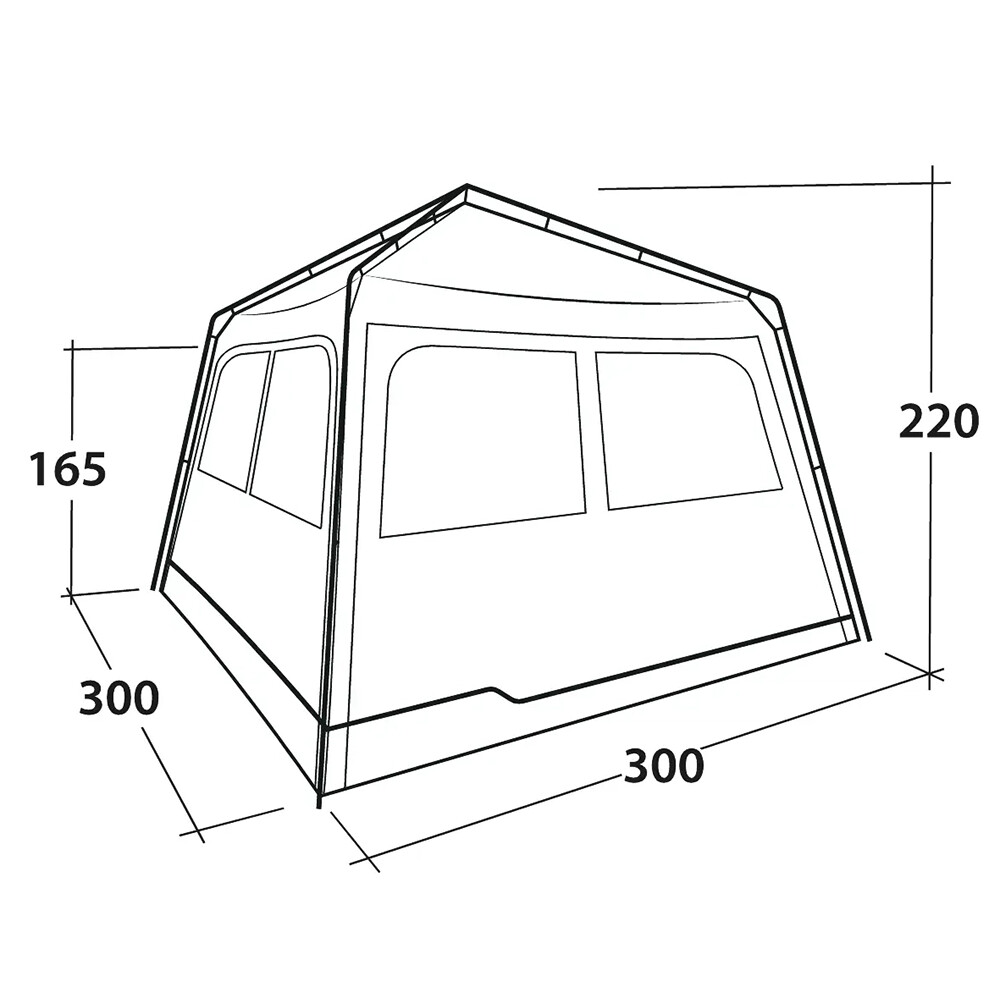 Fastlane 300 Shelter firmy Outwell to mistrz transformacji. Dwa z jego boków można rozłożyć jako markizy zacieniające za pomocą opcjonalnych tyczek, podczas gdy pozostałe dwa można całkowicie odłączyć, aby uzyskać maksymalną przewiewność. W zestawie znajduje się również zdejmowana wyściółka i panele boczne, dzięki czemu nie rozprasza Cię poranna rosa ani nieoczekiwane przeciągi. Aby zapewnić 100% stabilność na twardym podłożu lub przy silniejszym wietrze, zalecamy dodanie zestawu solidnych kołków. Świetnie nadaje się na festiwale, rodzinne kempingi i jako tło dla wydarzeń sportowych.