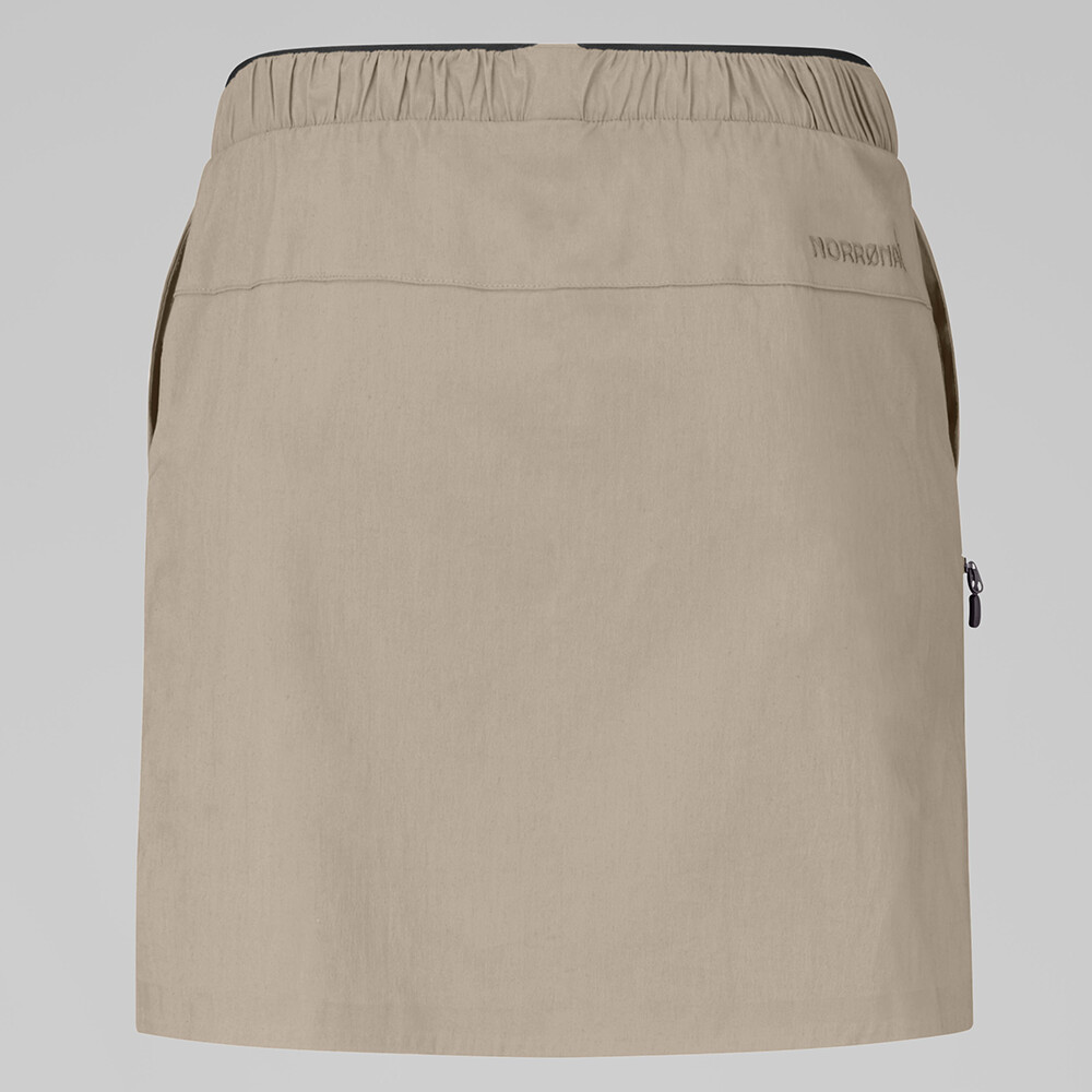 Bawełniana spódnica femund Women marki Norrona to najbardziej oddychająca spódnica outdoorowa w ofercie norweskiego specjalisty. Została zaprojektowana dla kobiet, które szukają maksymalnego komfortu podczas trekkingu i wędrówek w ciepłe dni, ale wymagają trwałości odzieży technicznej. Dzięki unikalnej mieszance bawełny organicznej i nylonu z recyklingu z powłoką DWR bez PFC, oferuje doskonałą ochronę przed wiatrem, wysoką oddychalność i wygodne uczucie na skórze, które docenisz podczas całodziennego noszenia na świeżym powietrzu i załatwiania spraw w mieście .