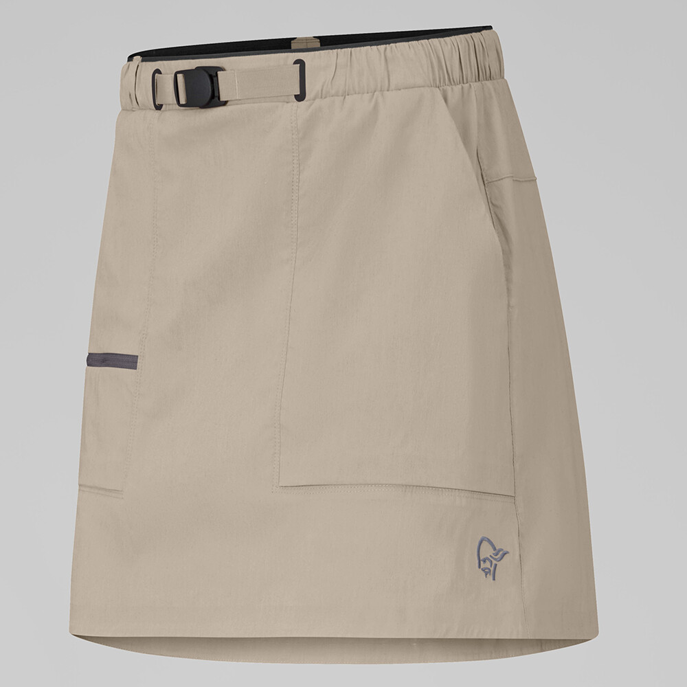 Bawełniana spódnica femund Women marki Norrona to najbardziej oddychająca spódnica outdoorowa w ofercie norweskiego specjalisty. Została zaprojektowana dla kobiet, które szukają maksymalnego komfortu podczas trekkingu i wędrówek w ciepłe dni, ale wymagają trwałości odzieży technicznej. Dzięki unikalnej mieszance bawełny organicznej i nylonu z recyklingu z powłoką DWR bez PFC, oferuje doskonałą ochronę przed wiatrem, wysoką oddychalność i wygodne uczucie na skórze, które docenisz podczas całodziennego noszenia na świeżym powietrzu i załatwiania spraw w mieście .