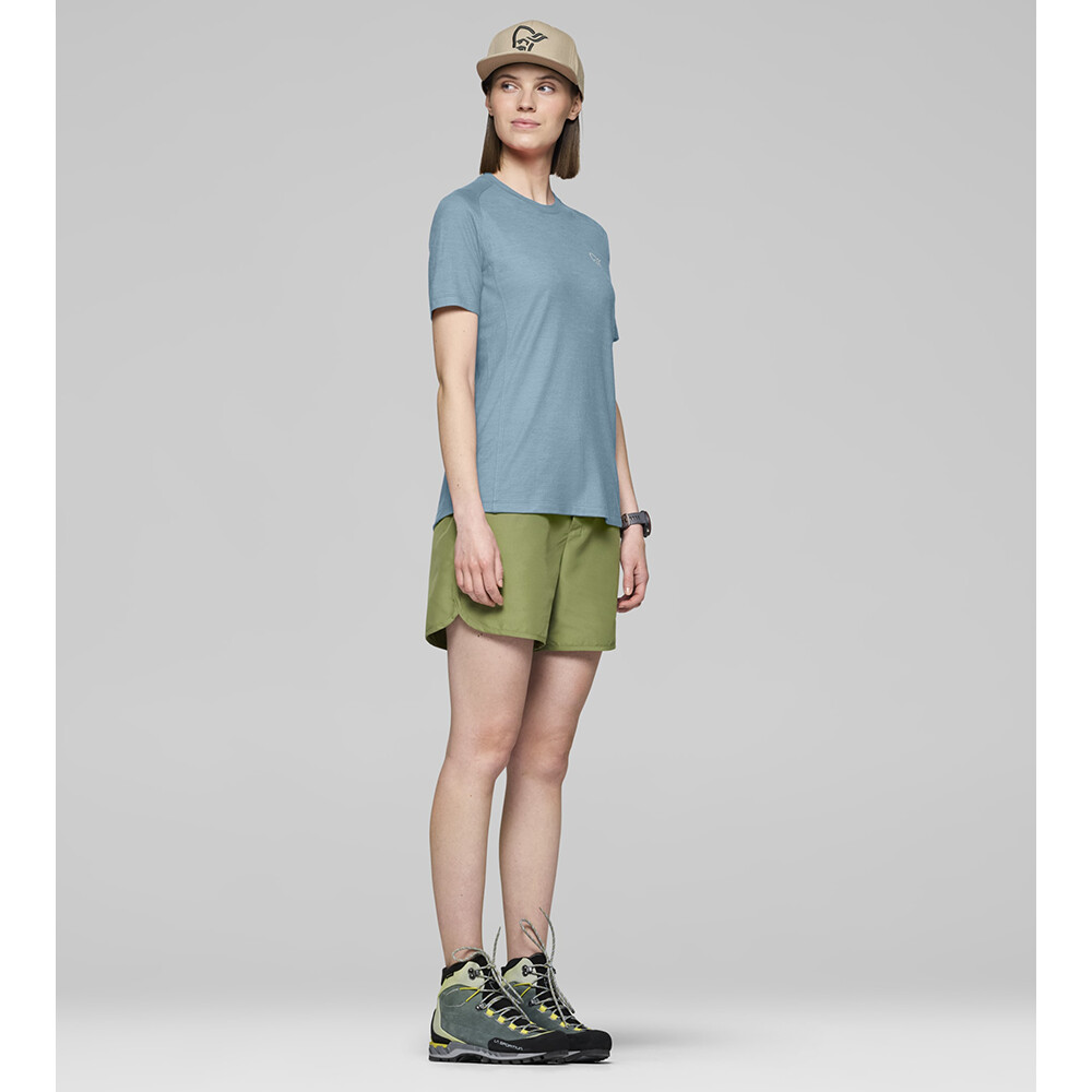 Damska funkcjonalna koszulka LightWool Tee Logo norweskiej firmy Aclima z miękkiej i lekkiej wełny przeznaczona do aktywności w cieplejszych miesiącach.