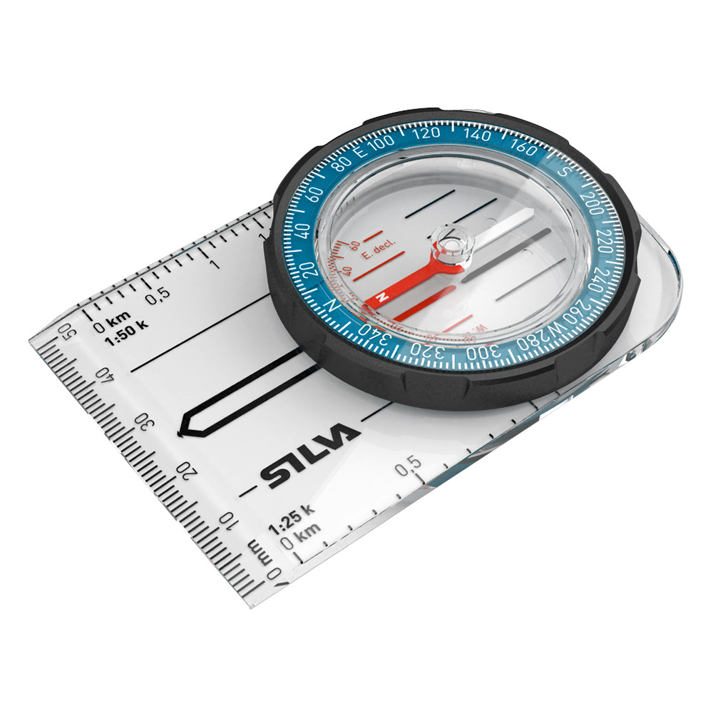Prosty kompas płytkowy firmy Silva, odpowiedni do codziennej orientacji w terenie lub jako narzędzie edukacyjne dla uczniów.