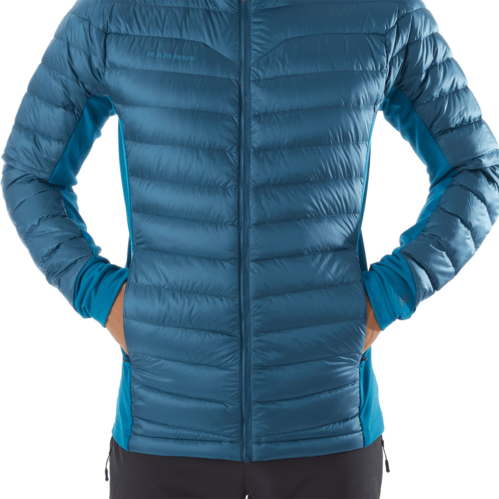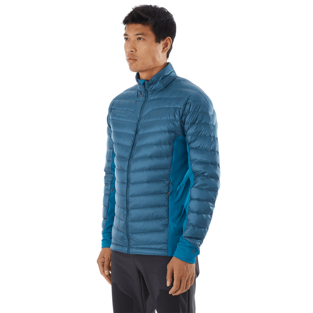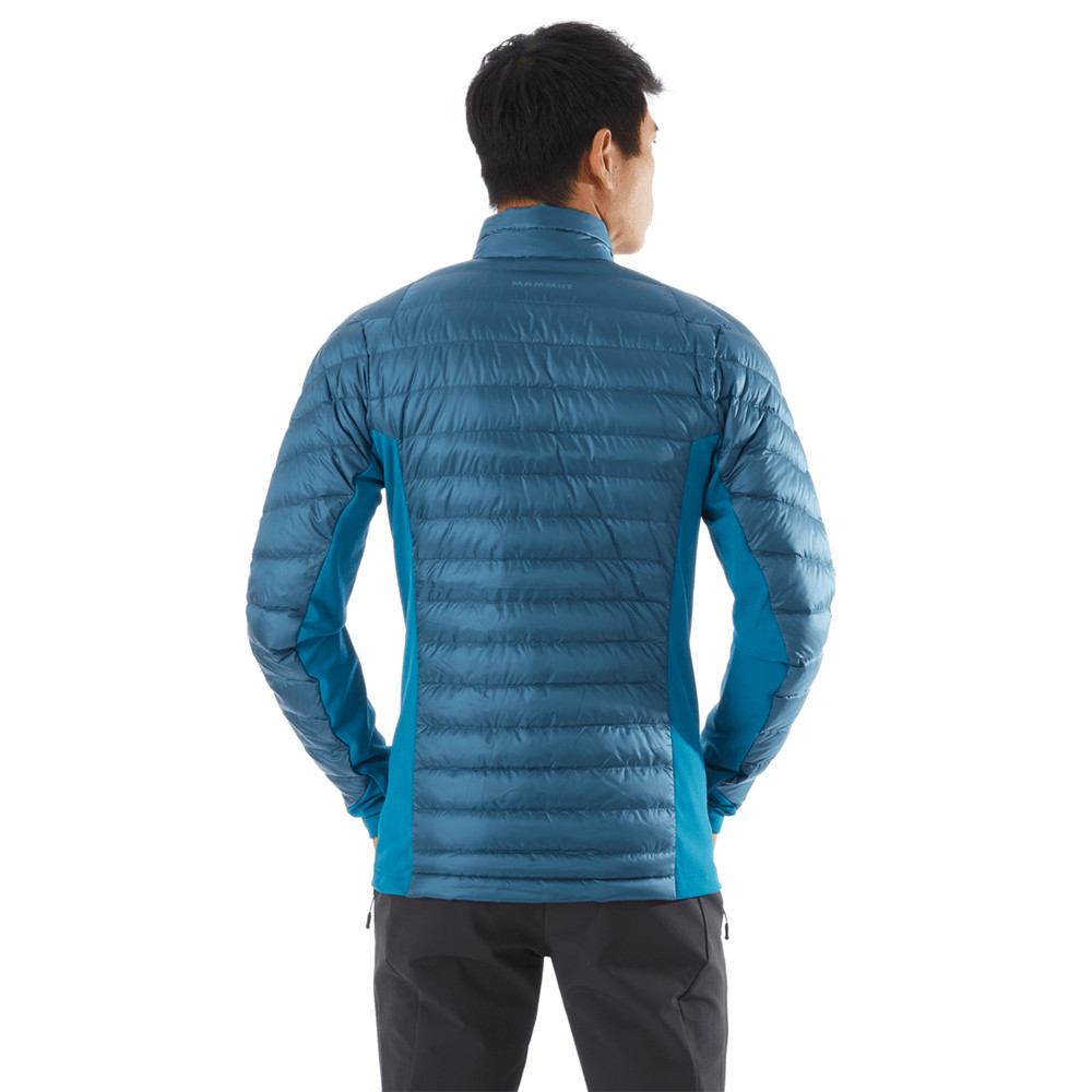 Męska kurtka hybrydowa Mammut zapewnia optymalną równowagę między ciepłem a oddychalnością. Elastyczny materiał nie ogranicza ruchów. Kurtkę można spakować do kieszeni i mieć zawsze pod ręką.