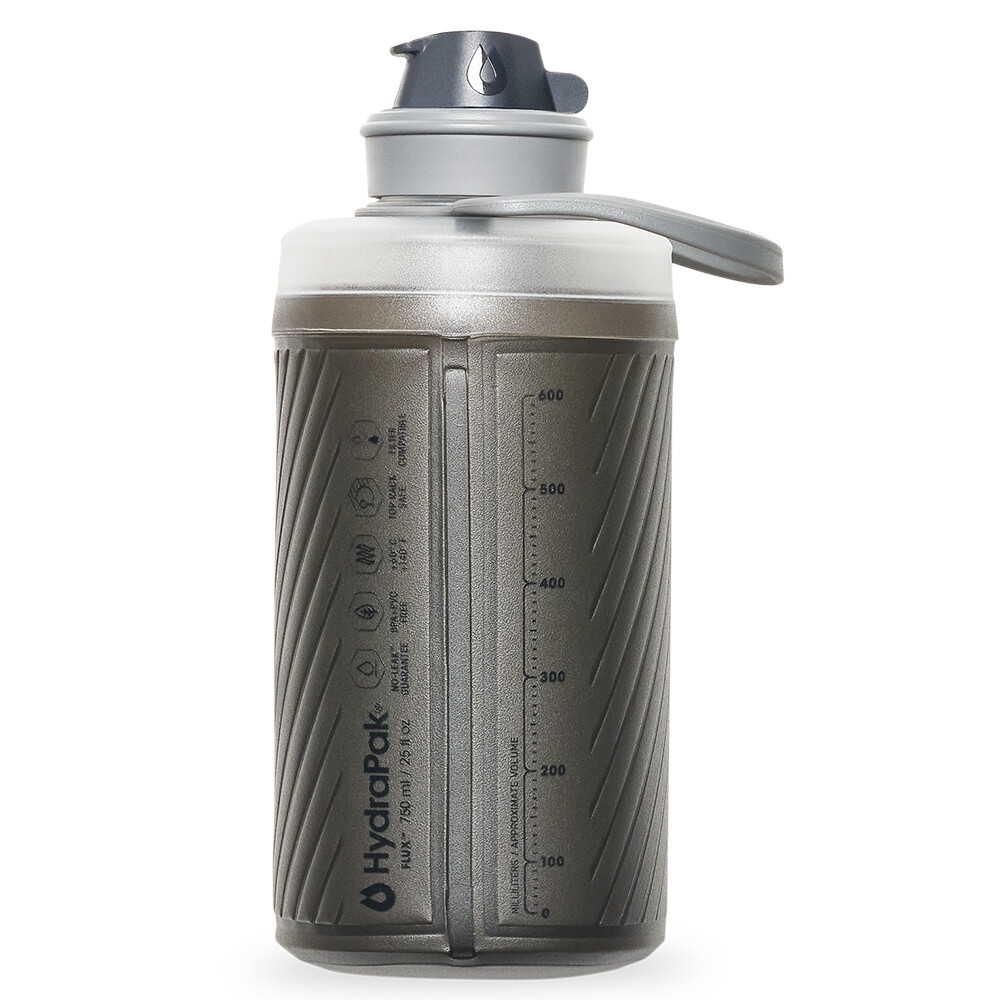 Butelka Flux firmy Hydrapak jest wykonana z miękkiego materiału, który nigdy nie będzie uciskał pleców w plecaku. Nadaje się na wycieczki plenerowe, zajęcia sportowe w pomieszczeniach i na świeżym powietrzu lub do codziennego użytku w pracy i szkole. Dzięki dwuściennemu materiałowi TPU zachowuje swój kształt po napełnieniu i stoi samodzielnie, jak klasyczna twarda plastikowa butelka. Po opróżnieniu zwija się do minimalnych rozmiarów i mieści się w kieszeni spodni. Otwieranie i zamykanie dyszy do picia można kontrolować jedną ręką.