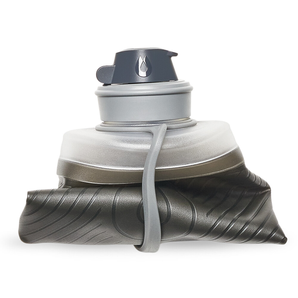 Elastyczna butelka, która zachowuje swój kształt po napełnieniu jak klasyczna butelka z twardego plastiku. Jednak po opróżnieniu zwija się jak miękka butelka do biegania. Wyposażony w ustnik z osłoną przeciwpyłową.