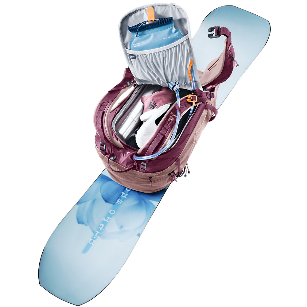 Damski plecak Freerider skialp marki deuter to idealny wybór do wszystkich zimowych aktywności. Dzięki dużym akcesoriom można wygodnie przymocować narty, snowboard, rakiety śnieżne, kijki, czekan, linę lub kask. Kształt plecaka idealnie przylega do pleców i nie krępuje ruchów głowy, co docenisz zwłaszcza podczas stromych podejść czy przejść wspinaczkowych. Kolejną ciekawostką jest zamek błyskawiczny w tylnej części, za pomocą którego można wyjąć sprzęt z głównej kieszeni bez konieczności zdejmowania nart przymocowanych do plecaka.