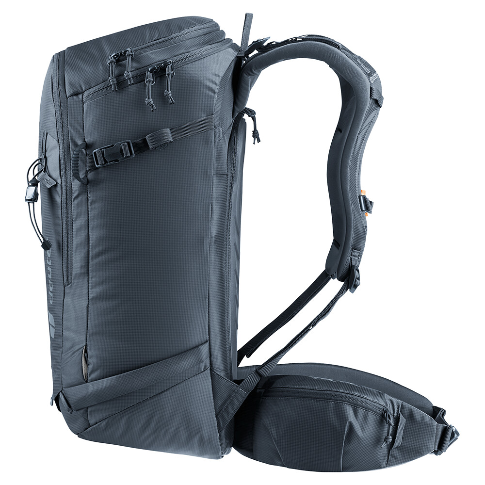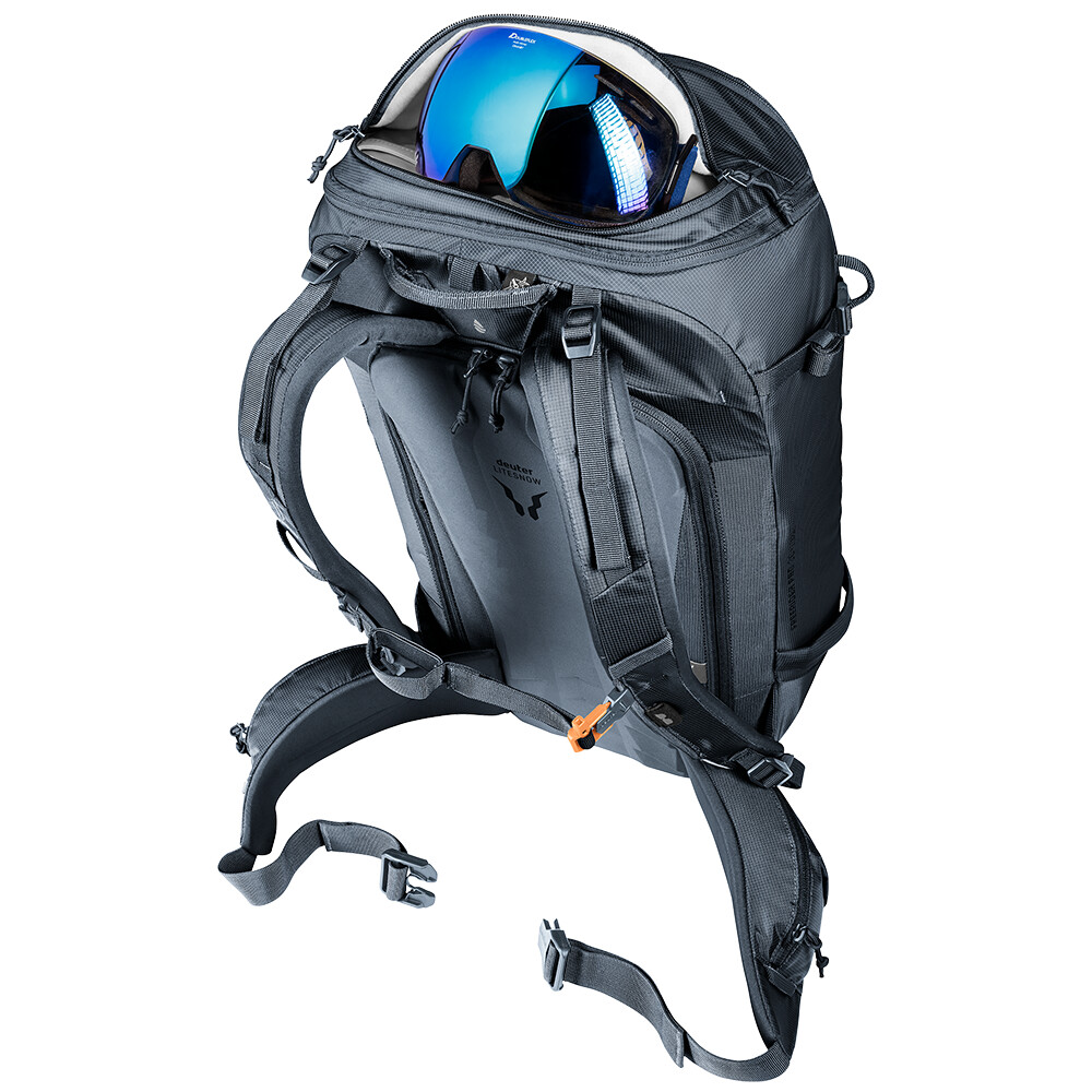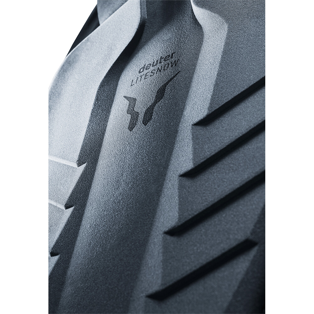 System pleców Deuter LiteSnow jest ultralekki, niezwykle wygodny w noszeniu i wodoodporny. Wyściółka pleców ma specjalny kształt z przerwami między pianką EVA a materiałem Spandex. Dzięki temu śnieg zebrany podczas zjazdu nie pozostaje na plecach, materiał nie wchłania wilgoci i zapewnia komfort noszenia przez cały dzień. Oczywiście są wyściełane paski na ramiona, regulowany pas piersiowy i biodrowy. Ponadto klamrę pasa piersiowego można obsługiwać jedną ręką, nawet w grubych zimowych rękawicach.