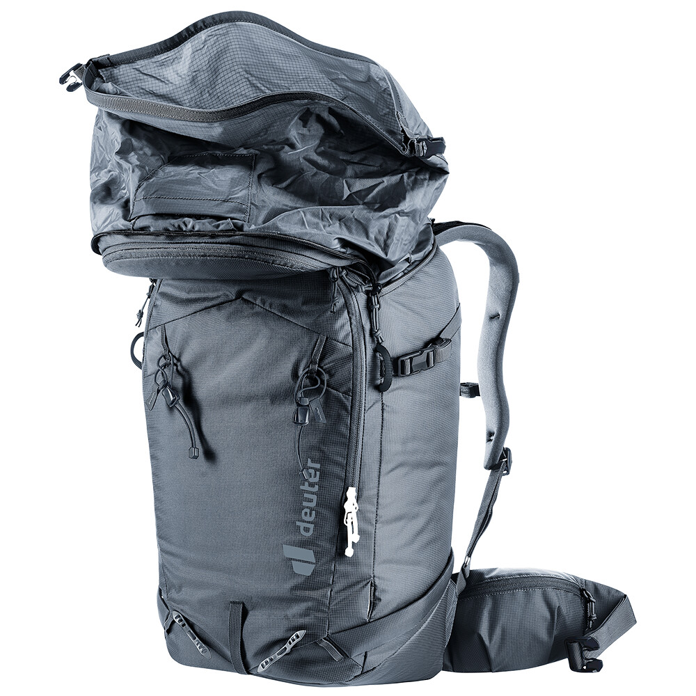 Plecak dla wspinaczy i skialpinistów. Posiada górne rolowane zamknięcie i boczne wejścia na suwak. Może przenosić liny, czekany, kijki, narty i zawiera uchwyt na kask. Pas biodrowy z materiałową pętlą.