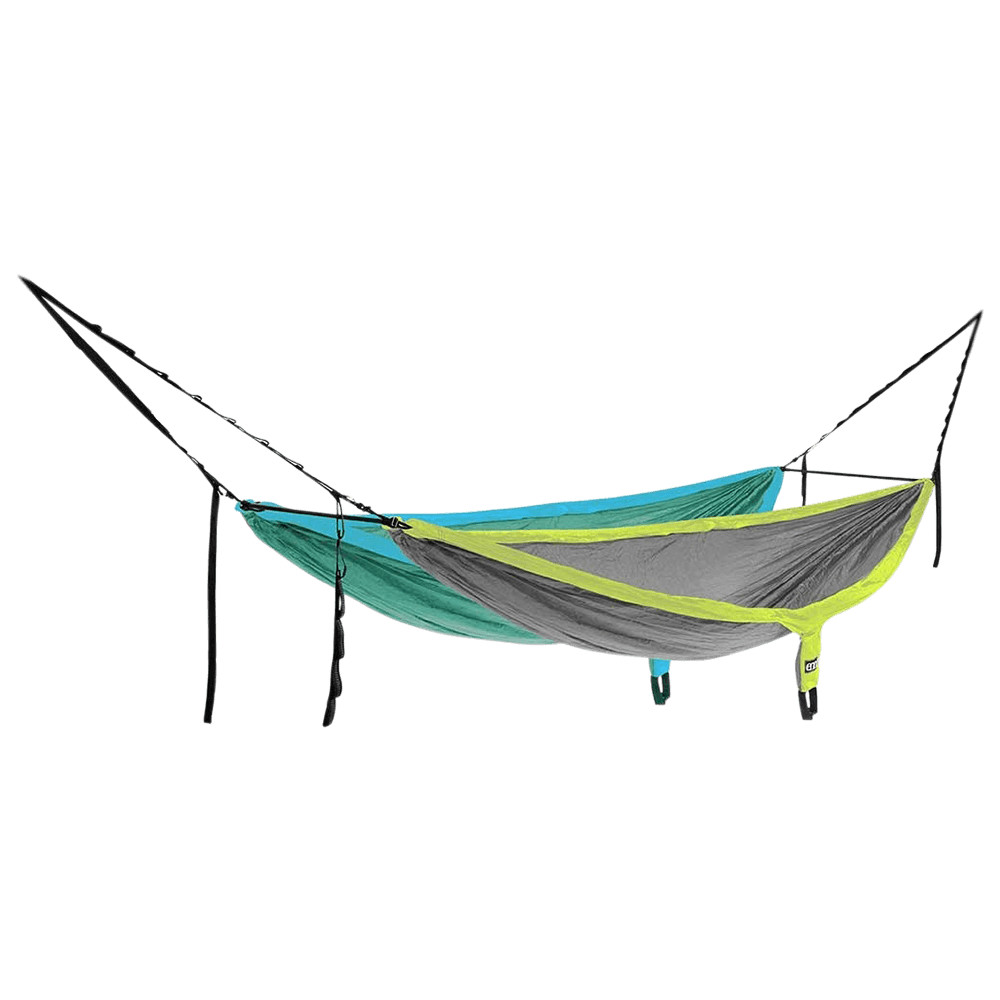 Zawieszenie dwóch hamaków obok siebie na dwóch drzewach nie będzie już problemem, dzięki temu systemowi wieszania ENO będziesz blisko innych wspinaczy. Są to dwa drążki rozporowe pomiędzy dwoma hamakami. Dzięki temu systemowi nie musisz szukać dwóch drzew w idealnej odległości od siebie dla każdego hamaka i będziesz blisko siebie w tym samym czasie.