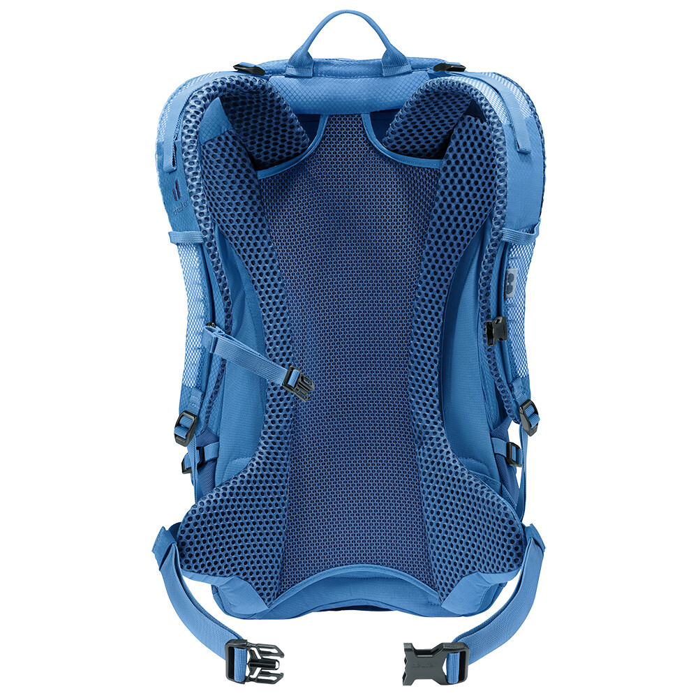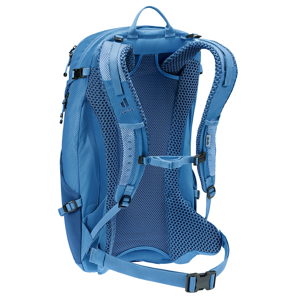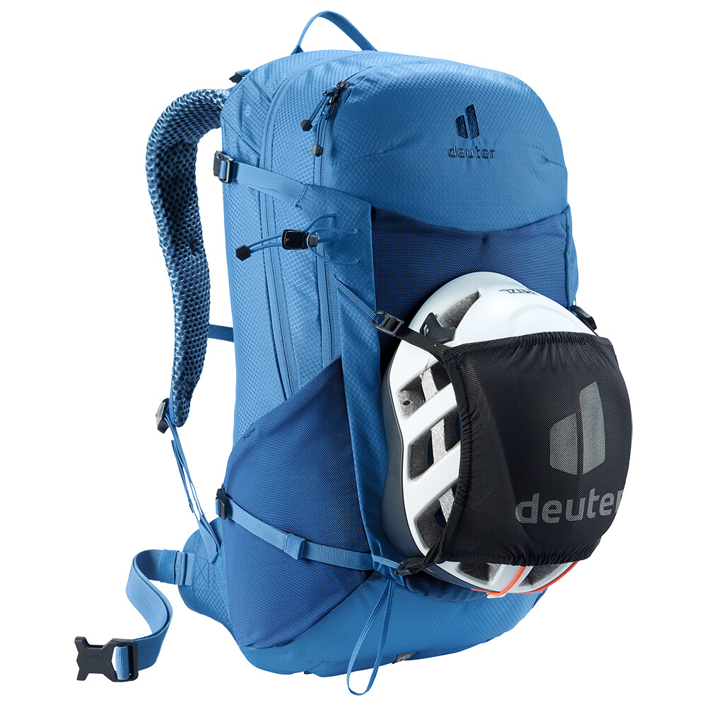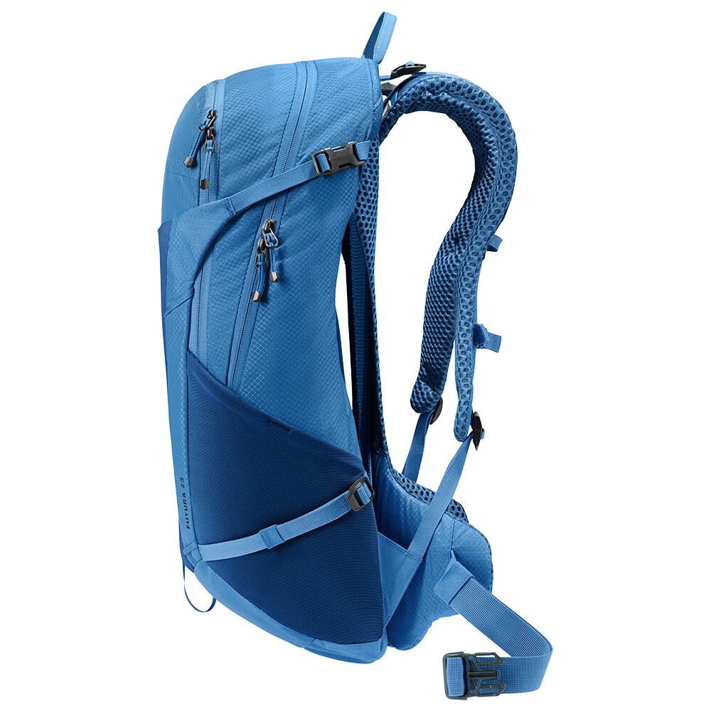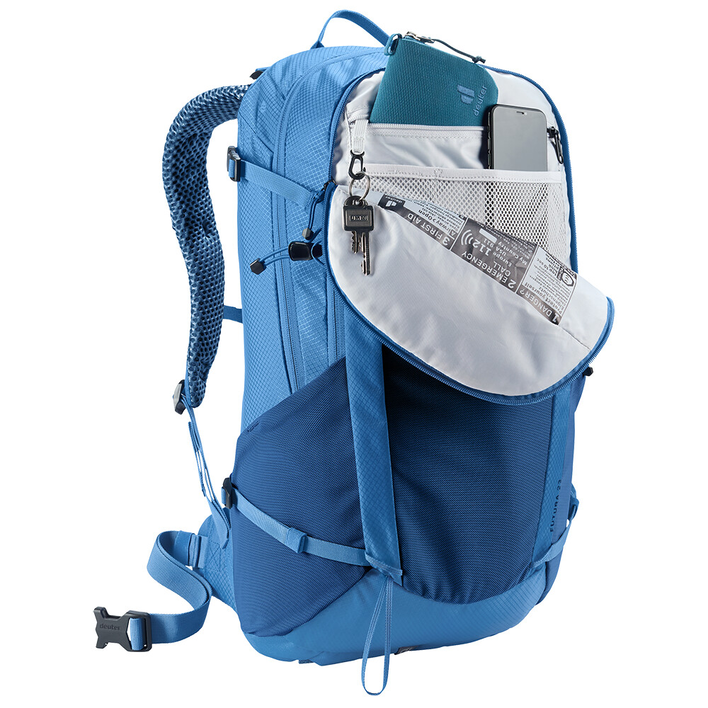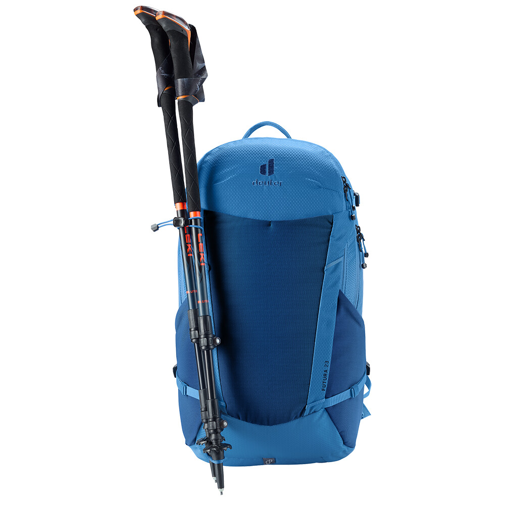 Plecak turystyczny Futura 23 firmy deuter będzie doskonałym towarzyszem podczas zwiedzania, niezależnie od tego, czy chodzi o wędrówki po górach, czy po prostu wędrówki po lesie. Futura ma system pleców składający się z metalowego wzmocnienia z siatką i wyściółką wokół kręgosłupa. Zapewnia to maksymalną oddychalność i optymalne rozłożenie ciężaru między ramionami i biodrami. Ponieważ plecak jest przeznaczony do wszelkiego rodzaju wędrówek, oferuje możliwość przymocowania kijków, czekana, uchwytu na kask, a także pokrowca przeciwdeszczowego.