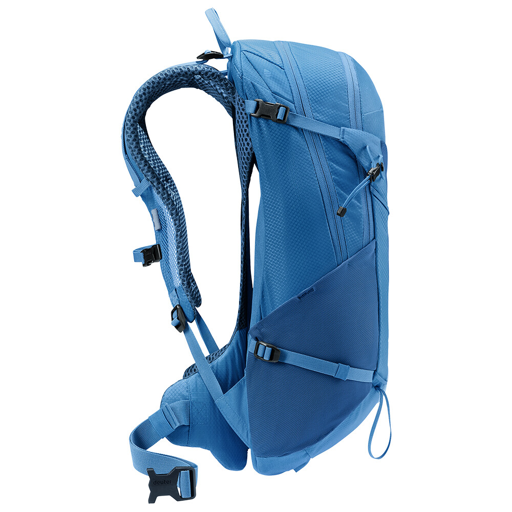 Lekki plecak turystyczny z przednią kieszenią główną i zwijaną górną pokrywą. Posiada siatkowe kieszenie na ramiączkach i odpinany pas biodrowy. Kompatybilny z systemem hydrovac, możliwość zamocowania kijków.