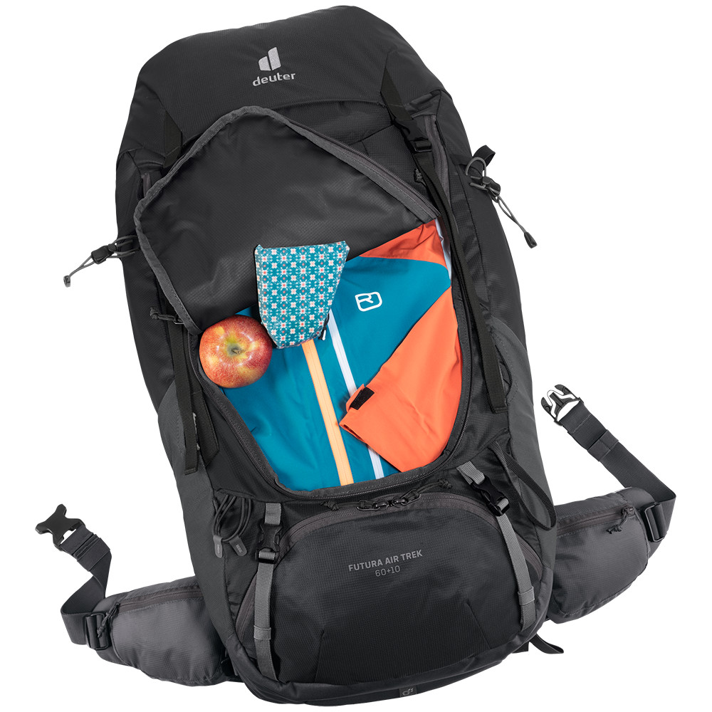 Plecak turystyczny Futura Air Trek marki deuter jest idealny na wielodniowe wycieczki. Wyrusz na odkrywanie natury z plecakiem, który sprawi, że po kilku krokach Twoje plecy nie będą przypominać stawu. Zadba o to system pleców Aircomfort z siatką i wzmocniony metalowy stelaż, który można łatwo dopasować do wzrostu. Paski naramienne dopasowują się do pleców dzięki systemowi zawieszenia ActiveFit. Ruchomy pas biodrowy pomaga utrzymać plecak w jednej linii z plecami podczas chodzenia w trawersie lub pod górę.