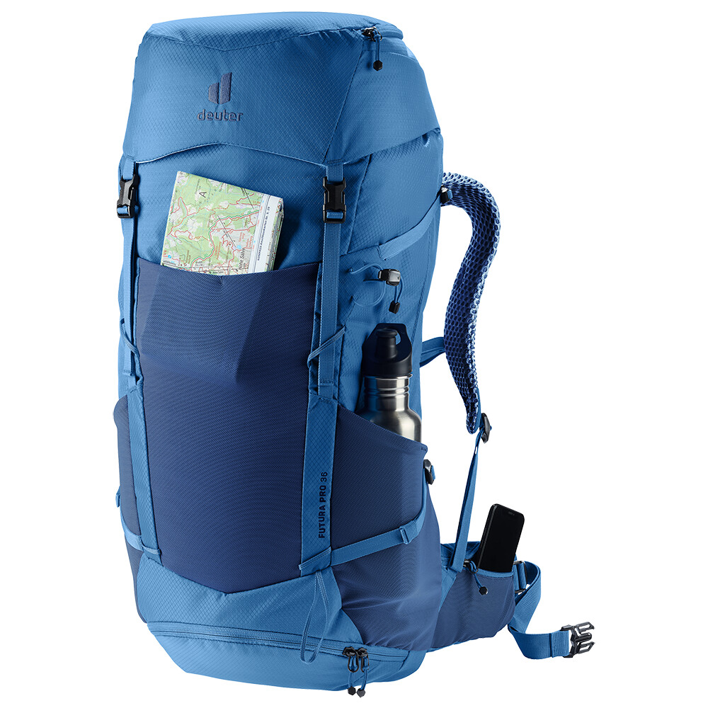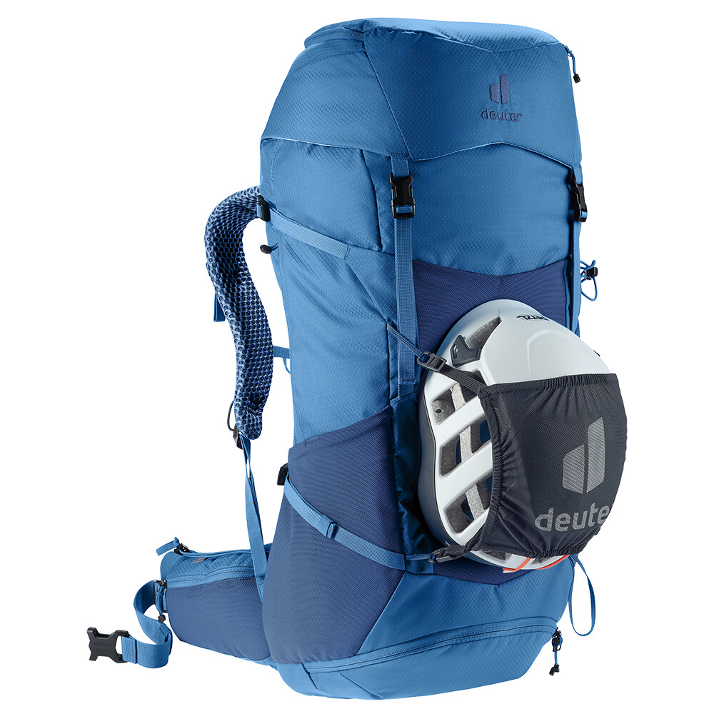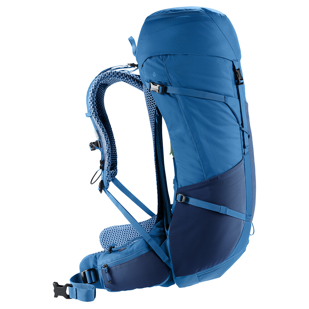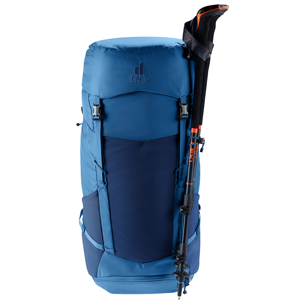 Plecak Futura Pro 36 firmy deuter będzie doskonałym towarzyszem podczas odkrywania, niezależnie od tego, czy chodzi o wędrówki po górach, czy po prostu wędrówki po lesie. Futura ma system pleców składający się z metalowego wzmocnienia z siatką i wyściółką wokół kręgosłupa. Zapewnia to maksymalną oddychalność i optymalne rozłożenie ciężaru między ramionami i biodrami. Ponadto seria Futura Pro jest wyposażona w system VariClick, który umożliwia regulację jednej z pięciu określonych długości pleców. Ponieważ plecak jest przeznaczony do wszelkiego rodzaju wędrówek, oferuje możliwość przymocowania kijków, czekana, uchwytu na kask, a także zawiera pokrowiec przeciwdeszczowy. Dla przejrzystości spakowanego sprzętu, plecak ma dwie oddzielne przegrody, które w razie potrzeby można połączyć w jedną dużą komorę.