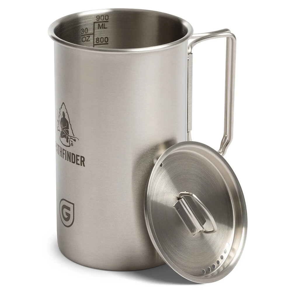 Geopress Nesting Cup jest wykonany ze stali nierdzewnej i nadaje się do różnych rodzajów kuchenek turystycznych. Zawiera pokrywkę z otworami ułatwiającymi nalewanie wody. Można go użyć do przygotowania wody do zalania odwodnionej żywności, ugotowania prostego posiłku lub jako kubka na ulubiony napój. Kubek ma uchwyty na zawiasach, wygrawerowaną skalę pomiarową, pojemność 900 ml i dokładnie pasuje do butelki z filtrem Geopress (wymiary kubka 16 x 9 cm).