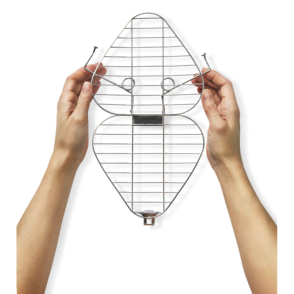 Mniejszy składany grill ze stali nierdzewnej, który zmieści się w plecaku turystycznym. Może być używany do grillowania lub jako ruszt podczas gotowania na otwartym ogniu. W zestawie pokrowiec transportowy.