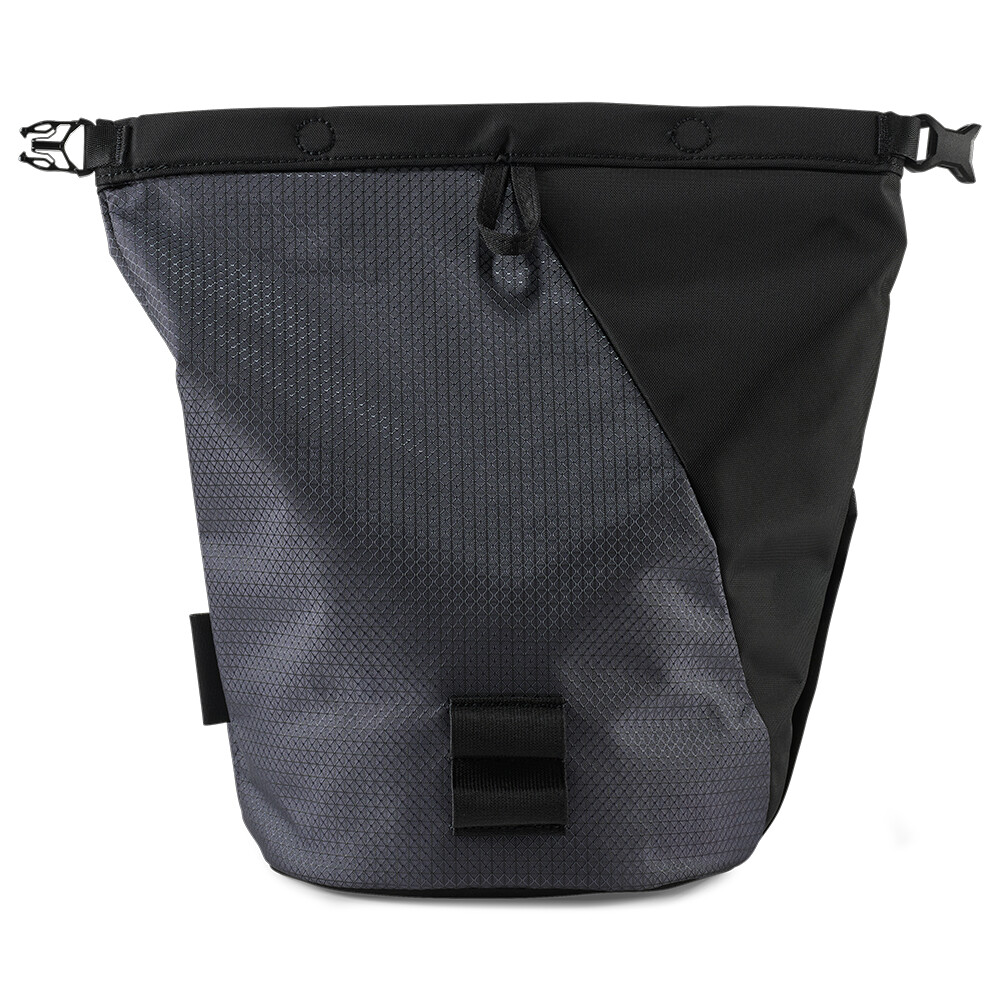 Woreczek na magnezję Granite Chalk Pot od La Sportiva przeznaczony do boulderingu. Woreczek wykonany jest z nylonu HT Robic X Grid z recyklingu z UHMWPE 210, jest to trwały i przyjazny dla środowiska materiał. Torba ma rolowane zamknięcie zabezpieczone magnesem i klamrą, która niezawodnie chroni zawartość przed rozlaniem. Otwory w kształcie rombów ułatwiają korzystanie z magnum, a podstawa torby ma solidną ramę dla dodatkowej stabilności. Torba jest wyposażona w dwa elastyczne uchwyty na szczotki, co jest praktyczne w użyciu. Do przechowywania małych przedmiotów, takich jak klucze itp. Zewnętrzna kieszeń z zamkiem błyskawicznym YKK® służy do przechowywania kluczy.