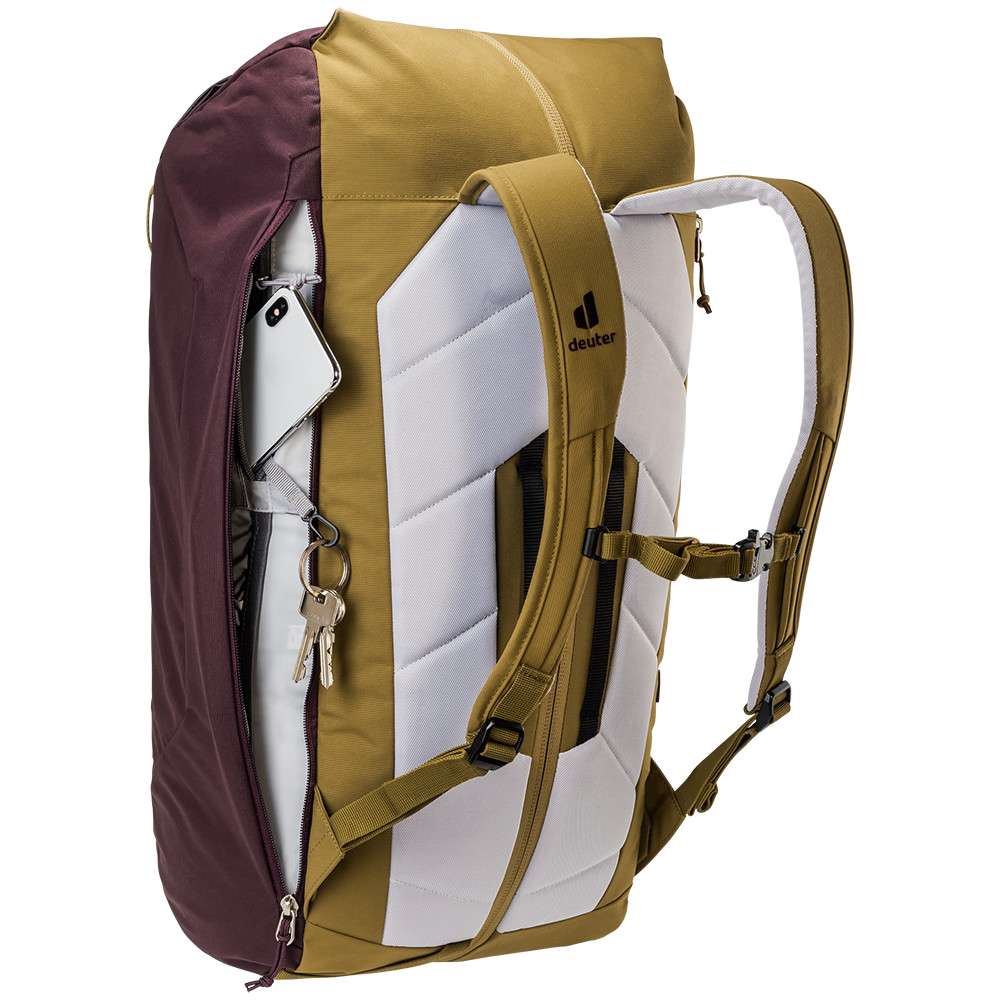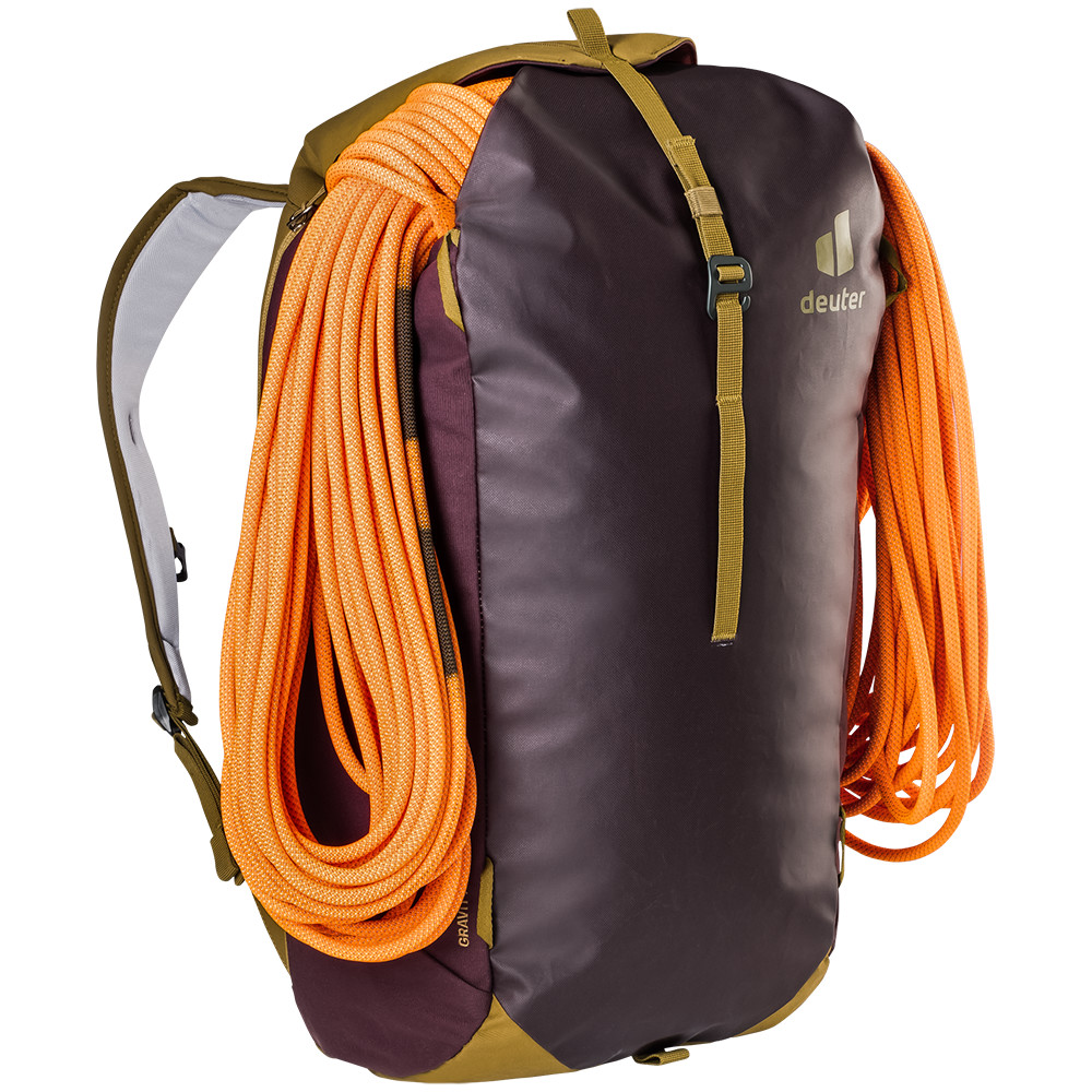 Gravity Motion firmy deuter posiada unikalny system pionowych zamków błyskawicznych na całych plecach, umożliwiając szybki i łatwy dostęp do całego plecaka. Nie ma znaczenia, czy wybierasz się na piasek czy granit. W obu przypadkach będziesz musiał nosić czapki. Wsuń raki do osobnej kieszeni, a nawet kosztowności mogą być ukryte w przestrzeni solo. Przerzuć linę przez plecak i zabezpiecz ją paskiem. Sprzęt wspinaczkowy, który nie mieści się w specjalnych pętlach, można przypiąć do plecaka.