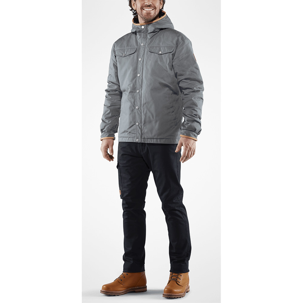 Dzięki kurtce puchowej Greenland szwedzkiego producenta Fjällraven możesz w pełni cieszyć się zimą bez obaw. Z pewnością docenisz fakt, że kurtka została wykonana ze zrównoważonych materiałów. Zewnętrzna powłoka G-1000® Eco jest bardzo wytrzymałym materiałem i chroni przed warunkami atmosferycznymi. Wodoodporność można zwiększyć poprzez woskowanie. Jako izolację zastosowano etycznie pozyskiwany gęsi puch. Kieszenie na piersi mają klasyczny design z serii Greenland z zapięciem na guziki. Dwukierunkowy zamek błyskawiczny z przodu jest przykryty klapką i ma również zapięcie na guziki. Kurtka nadaje się na wycieczki na łono natury lub codzienne podróże do pracy lub szkoły.