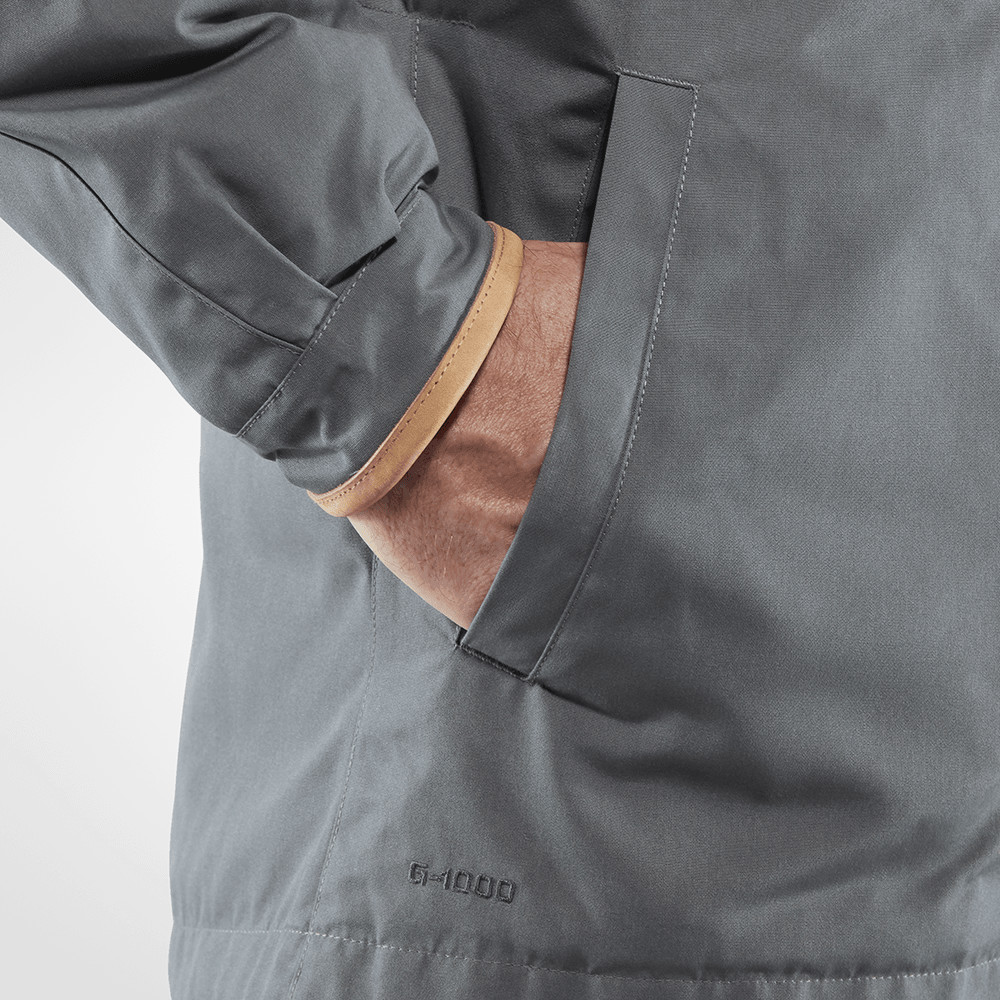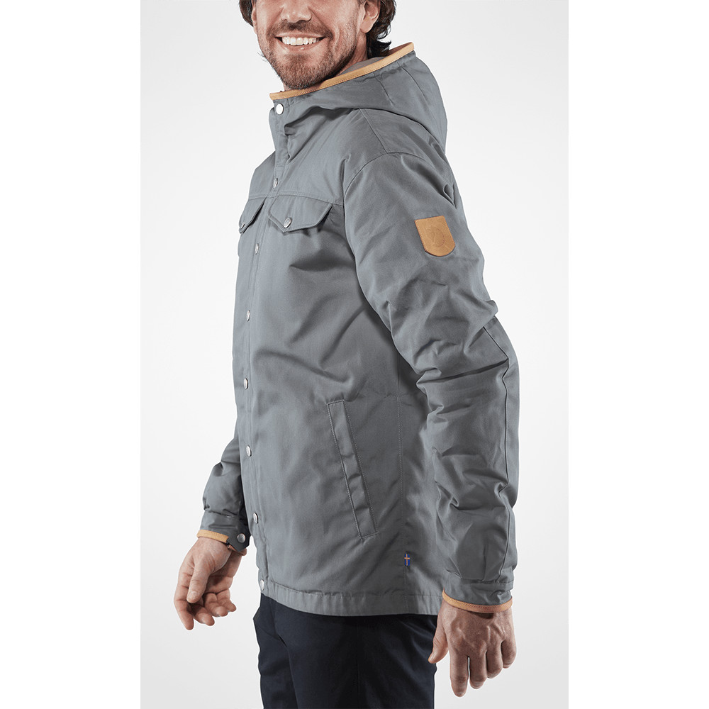Dzięki kurtce puchowej Greenland szwedzkiego producenta Fjällraven możesz w pełni cieszyć się zimą bez obaw. Z pewnością docenisz fakt, że kurtka została wykonana ze zrównoważonych materiałów. Zewnętrzna powłoka G-1000® Eco jest bardzo wytrzymałym materiałem i chroni przed warunkami atmosferycznymi. Wodoodporność można zwiększyć poprzez woskowanie. Jako izolację zastosowano etycznie pozyskiwany gęsi puch. Kieszenie na piersi mają klasyczny design z serii Greenland z zapięciem na guziki. Dwukierunkowy zamek błyskawiczny z przodu jest przykryty klapką i ma również zapięcie na guziki. Kurtka nadaje się na wycieczki na łono natury lub codzienne podróże do pracy lub szkoły.