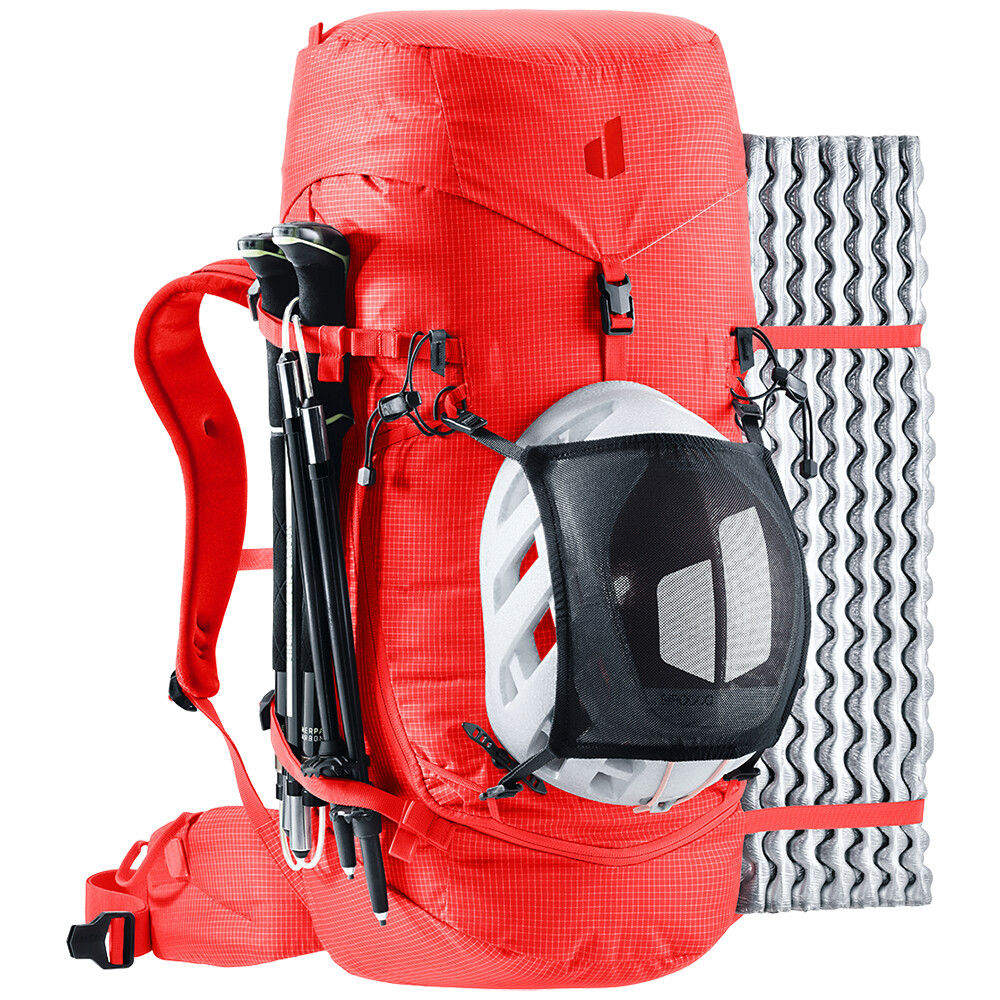 Sprawdzony plecak dla alpinistów i alpinistek, Guide firmy deuter to idealny plecak do przenoszenia całego sprzętu wspinaczkowego, czekanów, liny, kasku, a nawetnart. Jego krój umożliwia noszenie go na plecach nawet z siedziskiem i kaskiem na głowie. Jeśli chcesz zmniejszyć wagę plecaka podczas trudnej wspinaczki, po prostu zdejmij pas biodrowy i górną pokrywę z plecaka. Plecak ma również zamek błyskawiczny w kształcie litery J z przodu, zapewniający szybki dostęp do określonego sprzętu. Praktyczną cechą są boczne paski ściągające, które umożliwiają przymocowanie materaca piankowego.