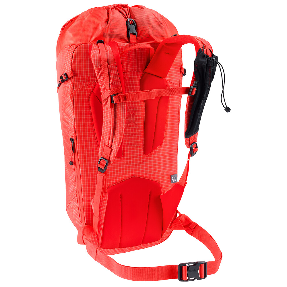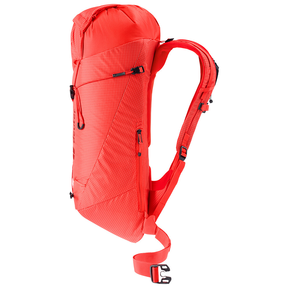 Plecak wspinaczkowy do wszystkich aktywności górskich. Możliwość mocowania lin, czekanów, kasków i nart. Nadaje się do użytku z torbą pod siodło i kaskiem. Odpinany pas biodrowy i pokrywa. Górne wypełnienie i zamek błyskawiczny z przodu.