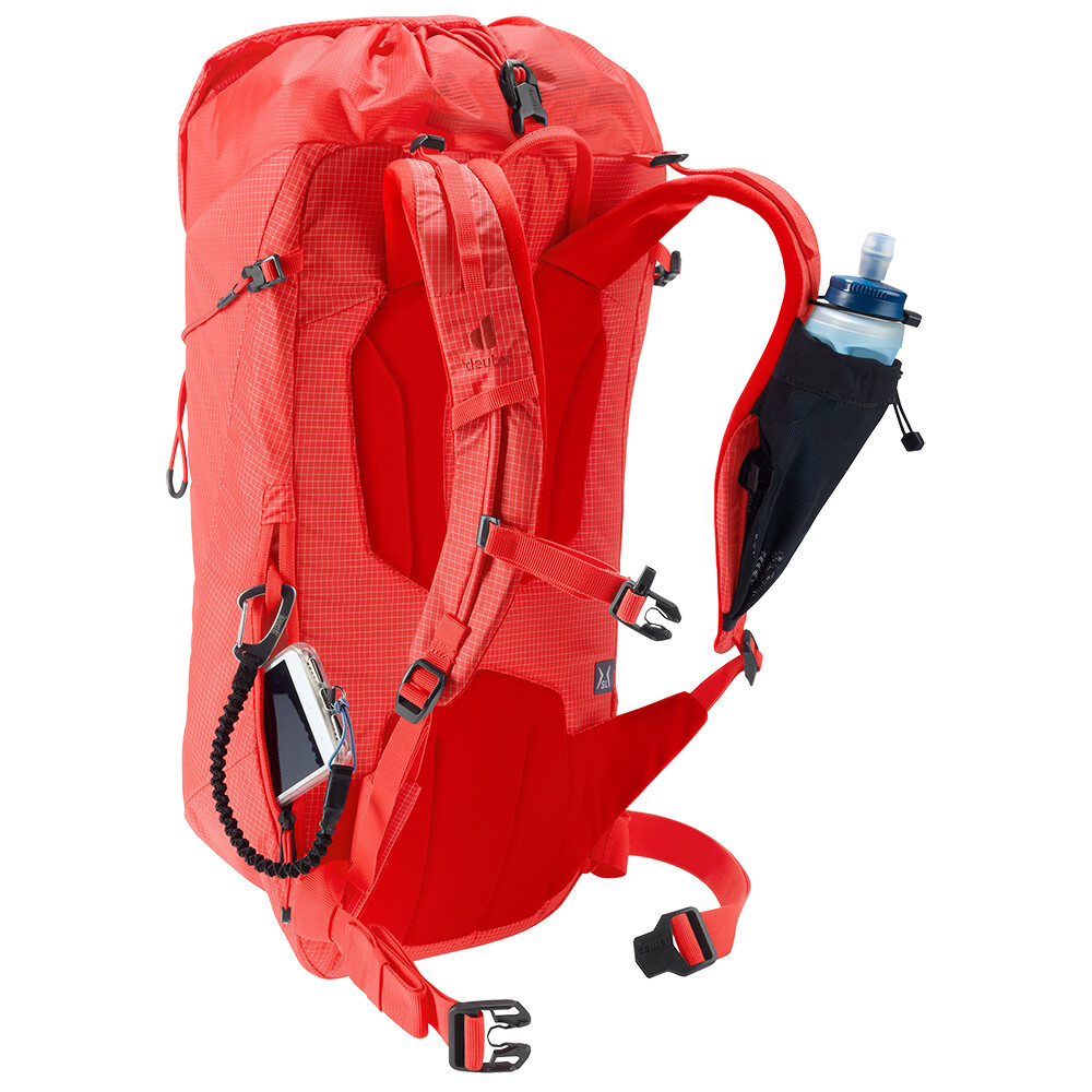 Sprawdzony plecak Guide marki deuter w ultralekkiej wersji Guide Lite. Pozwala na przenoszenie dowolnego sprzętu wspinaczkowego, czekanów, liny, kasku i kijków turystycznych. Jest skrojony w taki sposób, że można go nosić na plecach nawet z siedziskiem i kaskiem na głowie. Ponadto jest kompatybilny z systemem hydrovac, ma odpinany pas biodrowy i siatkową kieszeń na butelkę na pasku na ramię. Model "light" ma zmniejszoną wagę zastosowanych klamer, lżejszy materiał, system pleców i pas biodrowy. Wszystko to przy zachowaniu wytrzymałości i jakości.