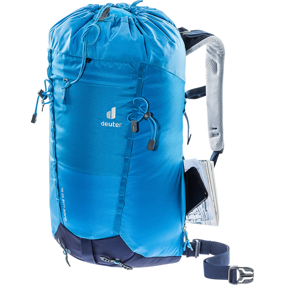 Plecak wspinaczkowy w wersji ultralekkiej. Możliwość mocowania lin, czekanów, kasków lub kijków. Nadaje się do użytku z siodełkiem i kaskiem na głowie. Kieszeń na butelkę na pasku na ramię. Wyściełany system pleców.
