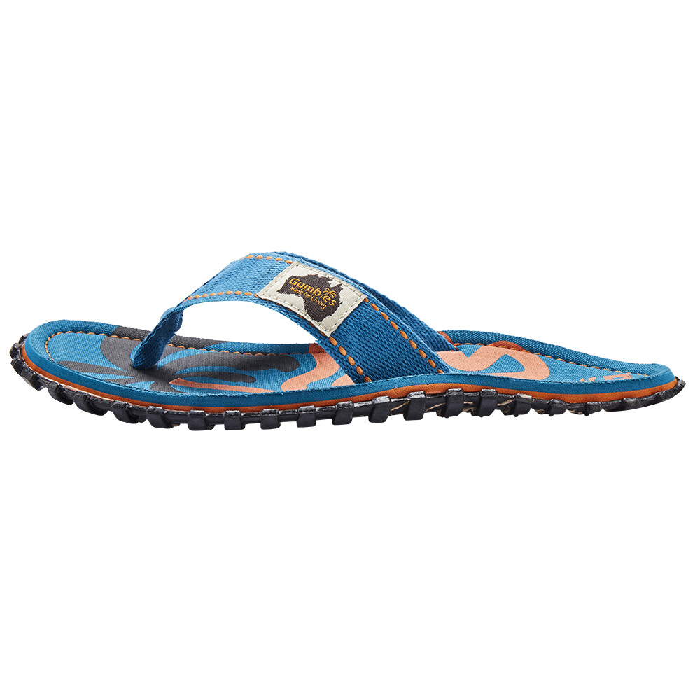 Naturalne i pochodzące z recyklingu materiały są podstawą japonek Gumbies Islander Blue Palmetto. Na szczególną uwagę zasługuje podeszwa 3D wykonana z gumy pochodzącej z recyklingu i siatki jutowej, która doskonale dopasowuje się do stopy i wspiera jej łuk. Podeszwa środkowa z pianki EVA z pamięcią kształtu, która doskonale amortyzuje kroki, również przyczynia się do wysokiego komfortu podczas noszenia. Wszystko to uzupełnia wygodna wkładka wykonana z bawełnianego płótna i specjalny miękki pasek, który nie ociera się między palcami. Dzięki niemu nie musisz obawiać się dłuższej wyprawy w "Gumbie".
