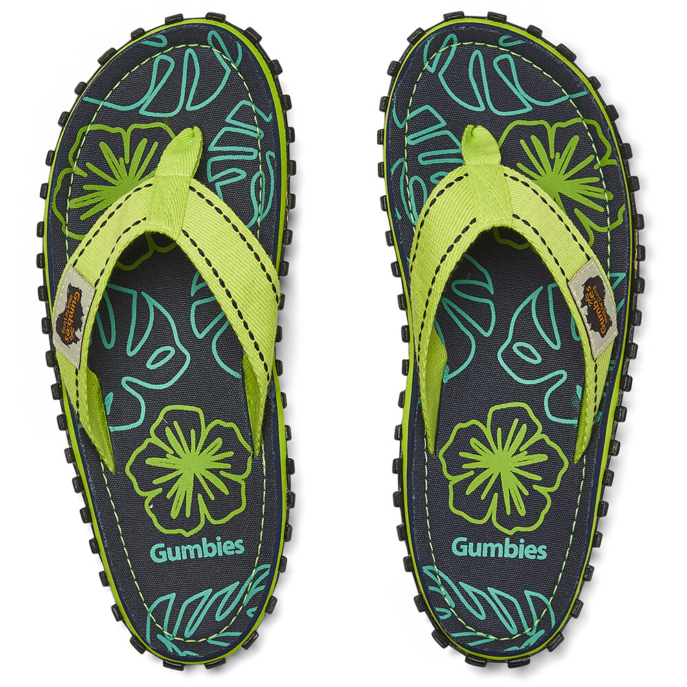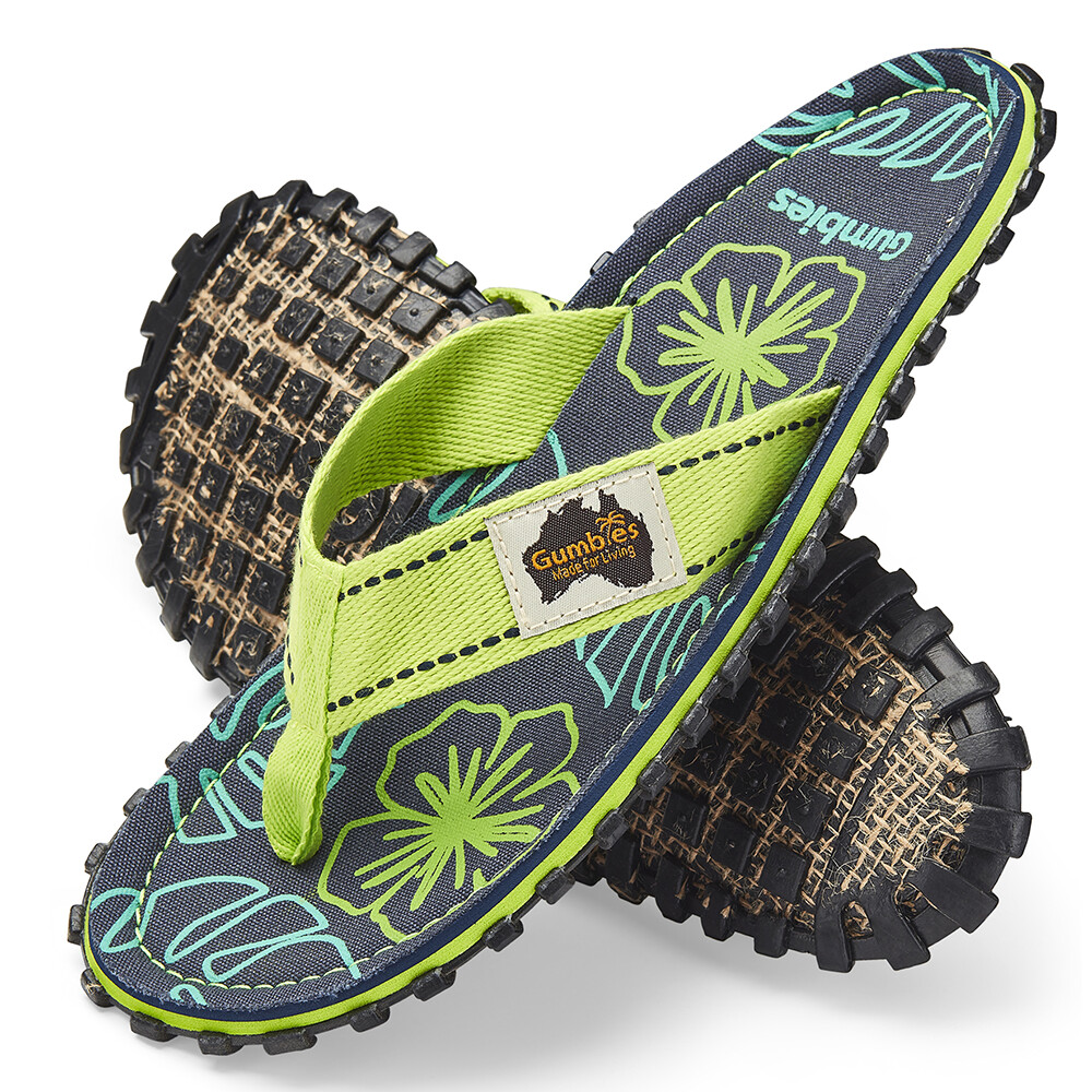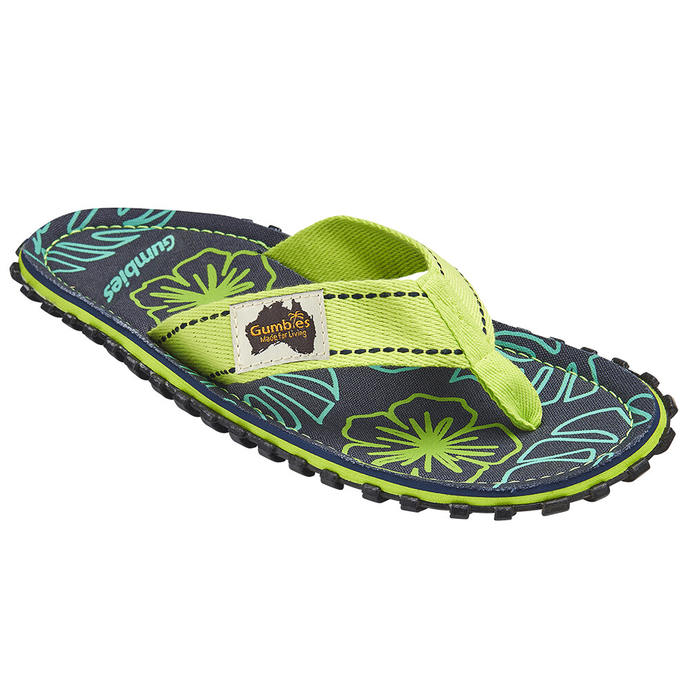 Gumbies Islander Lime Hibiscus to stylowe, ekologiczne i modne japonki z Australii. Zostały opracowane z pasją do outdooru, podróży i niezależności. Zapewniają swobodę minimalistycznego obuwia, jednocześnie chroniąc stopę solidną podeszwą.