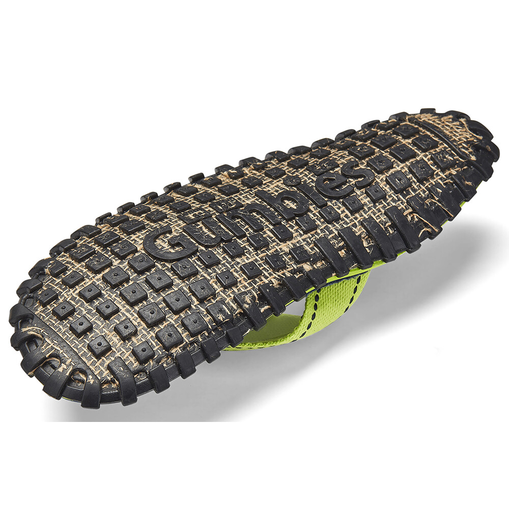 Naturalne i pochodzące z recyklingu materiały są podstawą japonek Gumbies Islander Lime Hibiscus. Na szczególną uwagę zasługuje podeszwa 3D wykonana z gumy pochodzącej z recyklingu i siatki jutowej, która doskonale dopasowuje się do stopy i wspiera jej łuk. Podeszwa środkowa z pianki EVA z pamięcią kształtu, która doskonale amortyzuje kroki, również przyczynia się do wysokiego komfortu podczas noszenia. Wszystko to uzupełnia wygodna wkładka z bawełnianego płótna i specjalny miękki pasek, który nie ociera między palcami. Dzięki niemu nie musisz obawiać się dłuższej wyprawy w "Gumbie".