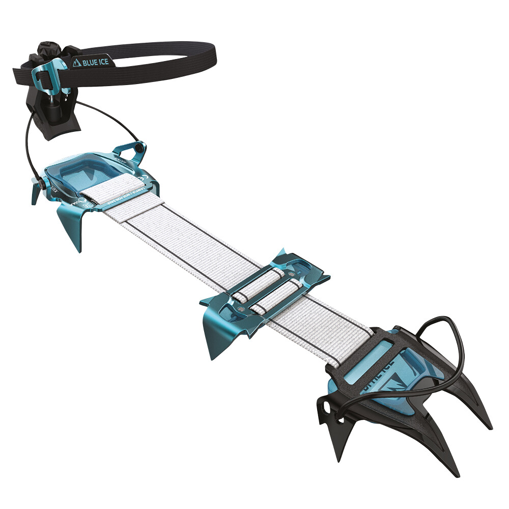 Raki Harfang od Blue Ice wyróżniają się unikalną konstrukcją - rama jest podzielona na trzy części, a poszczególne części są połączone bardzo wytrzymałym paskiem wykonanym z polietylenu. Pozwala to na złożenie ich do zaskakująco małego opakowania, porównywalnego z woderami turystycznymi. W przeciwieństwie do nich są to jednak pełnowymiarowe (CE/EN 893) raki 10-punktowe. W zestawie znajduje się pokrowiec transportowy, który można przypiąć do paska biodrowego plecaka i mieć raki natychmiast pod ręką. Ich niewielka waga sprawia, że są idealnym wyborem do skitouringu, wędrówek po lodowcach i wspinaczki górskiej.