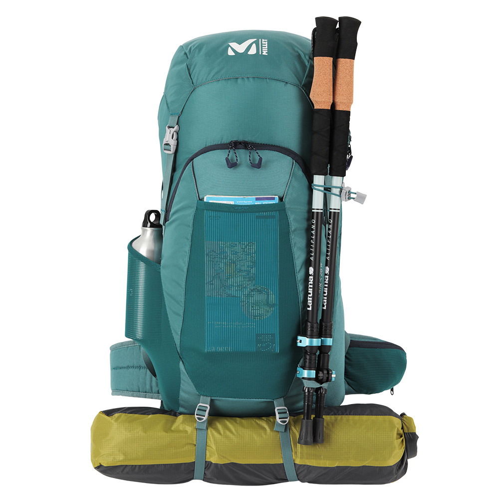 Lekki plecak turystyczny z przednią kieszenią główną i zwijaną górną pokrywą. Posiada siatkowe kieszenie na ramiączkach i odpinany pas biodrowy. Kompatybilny z systemem hydrovac, możliwość zamocowania kijków.