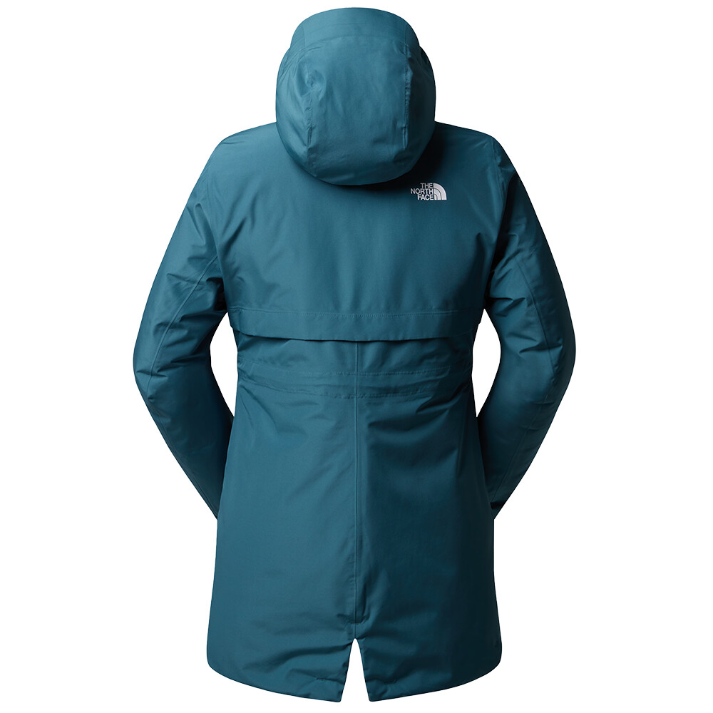 Damska parka od The North Face to idealny wybór na chłodne dni. Kurtka ma regulowany kaptur, dwie zapinane na zamek kieszenie, przesunięte szwy na ramionach, regulowaną talię i elastyczne mankiety.