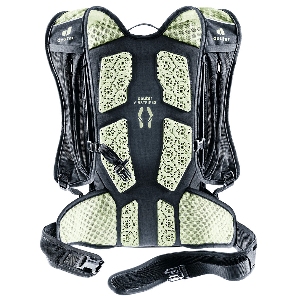 Plecak Hiline 8 marki deuter łączy w sobie doskonałą wentylację z ochroną kręgosłupa, dzięki czemu jest idealnym towarzyszem wymagających wypraw na szlaki. System pleców nowej generacji Airstripes z unikalną strukturą 3D zapewnia maksymalny przepływ powietrza dla suchych pleców nawet podczas intensywnych przejażdżek. Lekkie i wytrzymałe materiały wraz z niskim profilem plecaka zapewniają idealną równowagę między komfortem a wagą. Ergonomiczne paski w stylu kamizelki dopasowują się do ciała i wraz z elastycznym pasem piersiowym i biodrowym zapewniają stabilność nawet podczas technicznych odcinków. Centralna kieszeń z dużym zamkiem błyskawicznym na obwodzie jest dobrze zorganizowana, można w niej przechowywać narzędzia, niezbędny sprzęt, ale także baton energetyczny.